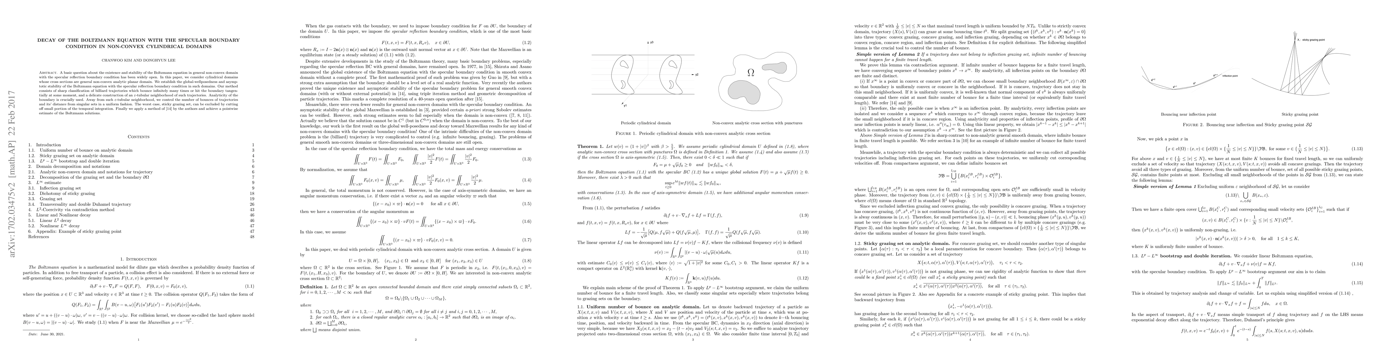 This paper establishes global-wellposedness and asymptotic stability of the Boltzmann equation in non-convex cylindrical domains with specular reflection boundary conditions. The authors achieve this through a classification of billiard trajectories and a construction of an $\epsilon$-tubular neighborhood, leveraging the analyticity of the boundary.