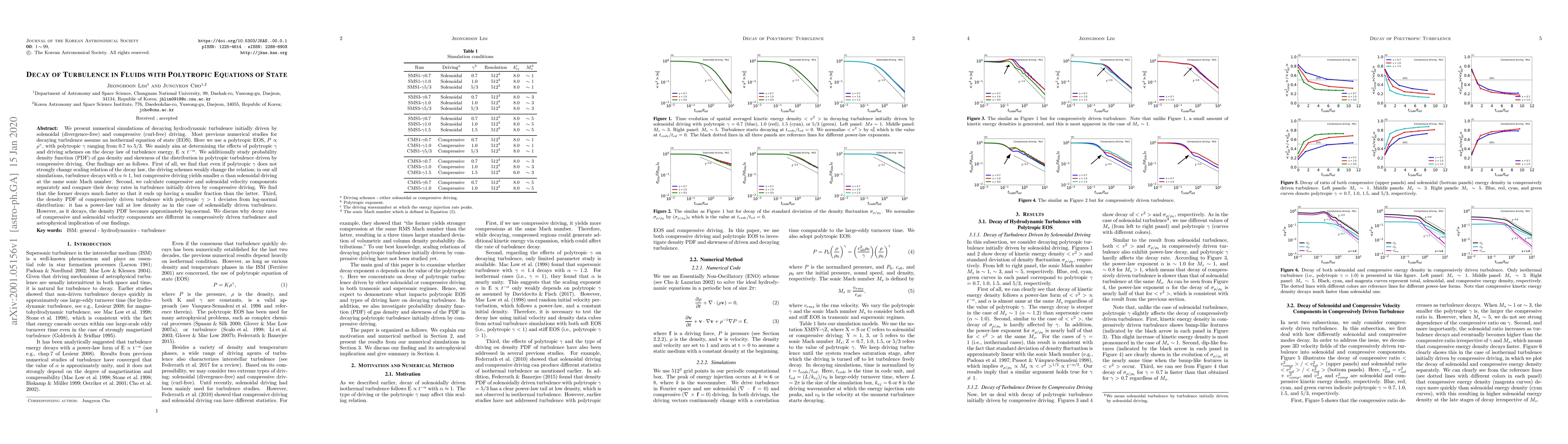We present numerical simulations of decaying hydrodynamic turbulence initially driven by solenoidal (divergence-free) and compressive (curl-free) driving. Most previous numerical studies for decaying turbulence assume an isothermal equation of state (EOS). Here we use a polytropic EOS, $P$ $\propto$ $\rho^{\gamma}$, with polytropic $\gamma$ ranging from 0.7 to 5/3. We mainly aim at determining the effects of polytropic $\gamma$ and driving schemes on the decay law of turbulence energy, E $\propto$ $t^{-\alpha}$. We additionally study probability density function (PDF) of gas density and skewness of the distribution in polytropic turbulence driven by compressive driving. Our findings are as follows. First of all, we find that even if polytropic $\gamma$ does not strongly change scaling relation of the decay law, the driving schemes weakly change the relation; in our all simulations, turbulence decays with $\alpha$ $\approx$ 1, but compressive driving yields smaller $\alpha$ than solenoidal driving at the same sonic Mach number. Second, we calculate compressive and solenoidal velocity components separately and compare their decay rates in turbulence initially driven by compressive driving. We find that the former decays much faster so that it ends up having a smaller fraction than the latter. Third, the density PDF of compressively driven turbulence with polytropic $\gamma$ $>$ 1 deviates from log-normal distribution: it has a power-law tail at low density as in the case of solenoidally driven turbulence. However, as it decays, the density PDF becomes approximately log-normal. We discuss why decay rates of compressive and solenoidal velocity components are different in compressively driven turbulence and astrophysical implication of our findings.