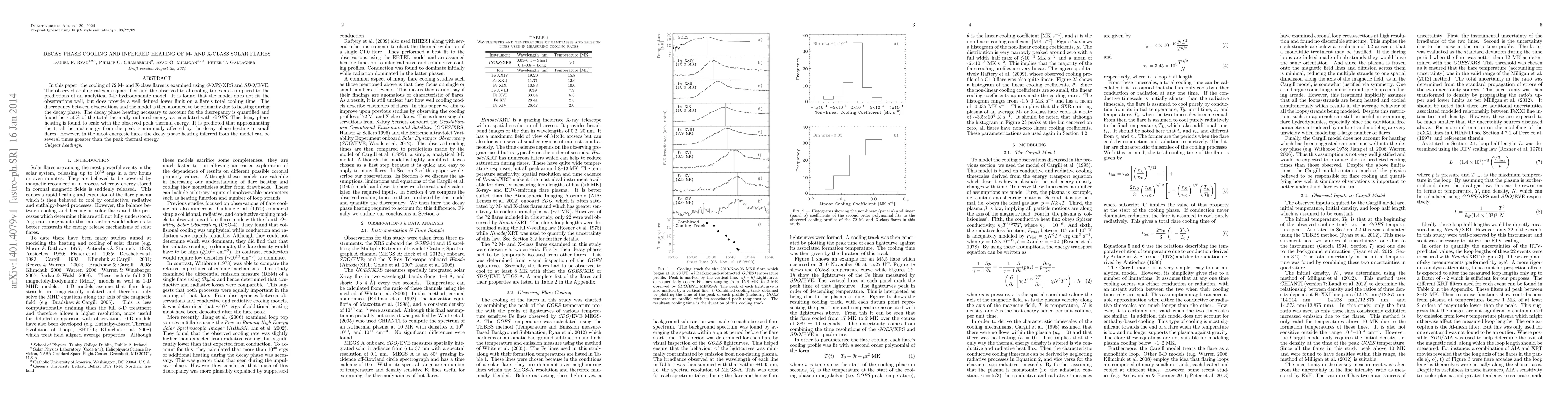 This study examines the cooling rates of 72 M- and X-class solar flares, finding that an analytical model underestimates the observed cooling times. The discrepancy is attributed to decay phase heating, estimated to be around 50% of the total radiated energy, which scales with the peak thermal energy.