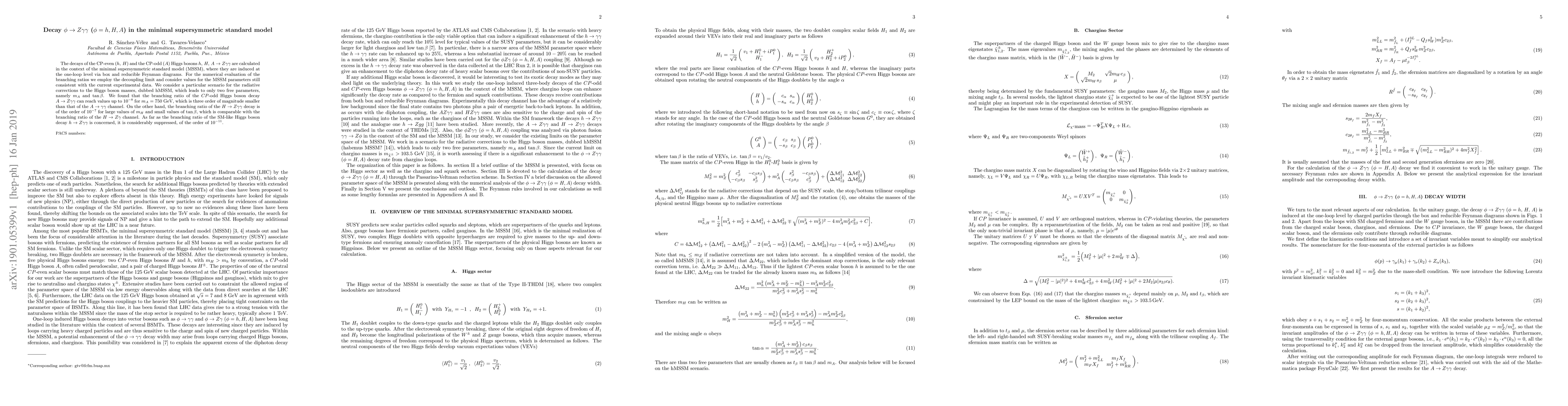 This paper calculates the decay rates for CP-even and CP-odd Higgs bosons in the minimal supersymmetric standard model, finding that the $A\to Z\gamma\gamma$ decay can reach up to $10^{-8}$ and $H\to Z\gamma\gamma$ around $10^{-7}$ under certain conditions, while the SM-like Higgs boson decay $h\to Z\gamma\gamma$ is significantly suppressed at $10^{-11}$.