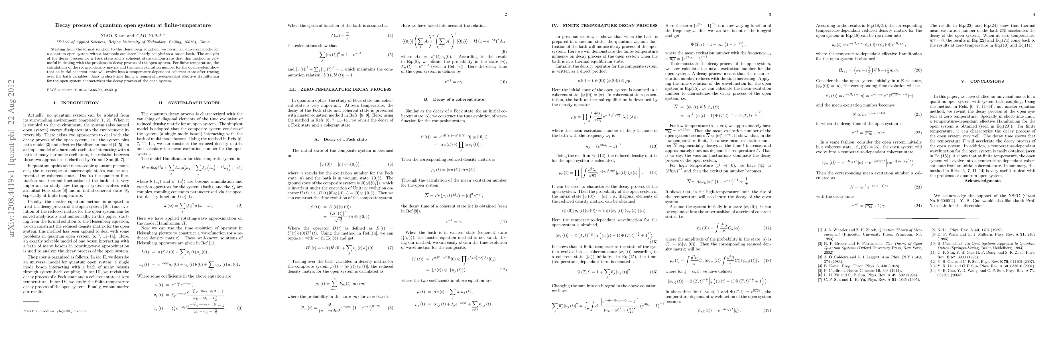 Starting from the formal solution to the Heisenberg equation, we revisit an universal model for a quantum open system with a harmonic oscillator linearly coupled to a boson bath. The analysis of the decay process for a Fock state and a coherent state demonstrate that this method is very useful in dealing with the problems in decay process of the open system. For finite temperature, the calculations of the reduced density matrix and the mean excitation number for the open system show that an initial coherent state will evolve into a temperature-dependant coherent state after tracing over the bath variables. Also in short-time limit, a temperature-dependant effective Hamiltonian for the open system characterizes the decay process of the open system.
