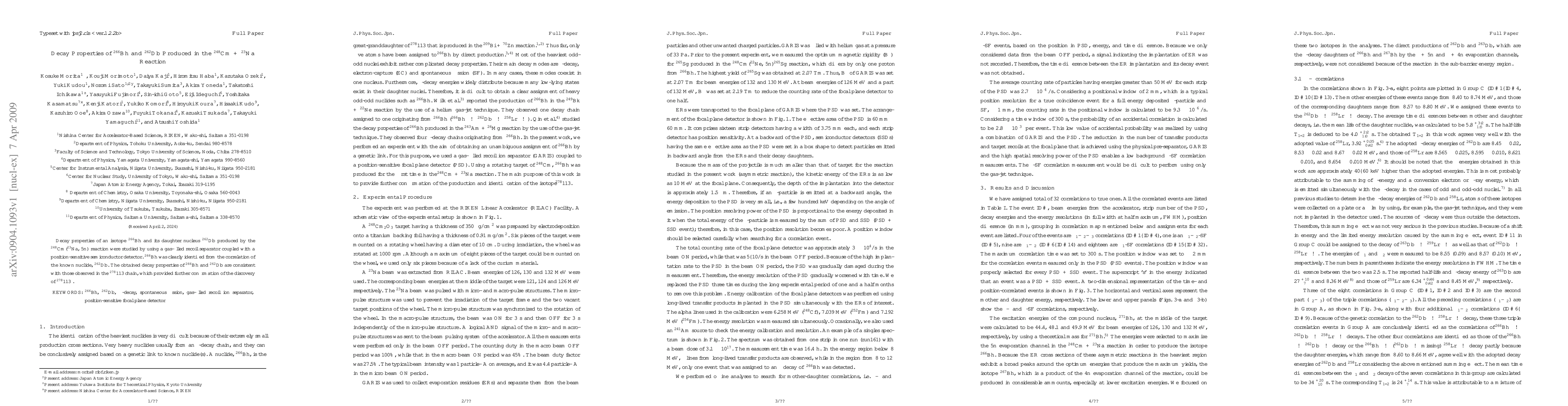 Decay properties of an isotope $^{266}$Bh and its daughter nucleus $^{262}$Db produced by the $^{248}$Cm($^{23}$Na, 5\textit{n}) reaction were studied by using a gas-filled recoil separator coupled with a position-sensitive semiconductor detector. $^{266}$Bh was clearly identified from the correlation of the known nuclide, $^{262}$Db. The obtained decay properties of $^{266}$Bh and $^{262}$Db are consistent with those observed in the $^{278}$113 chain, which provided further confirmation of the discovery of $^{278}$113.