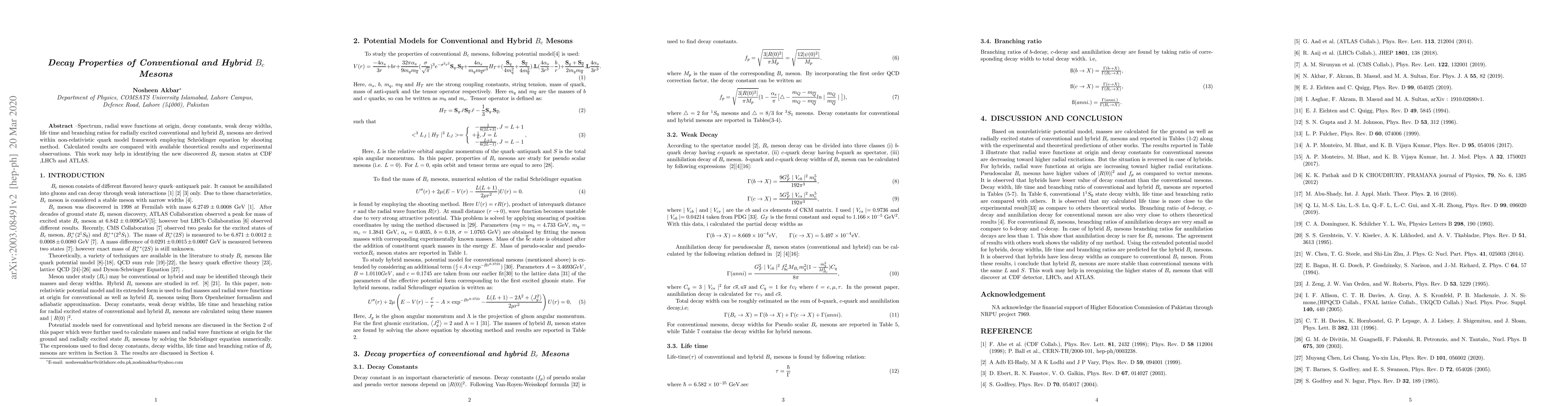 Researchers used a non-relativistic quark model to calculate properties of conventional and hybrid $B_c$ mesons, comparing results with available data to help identify new discovered states at particle colliders.