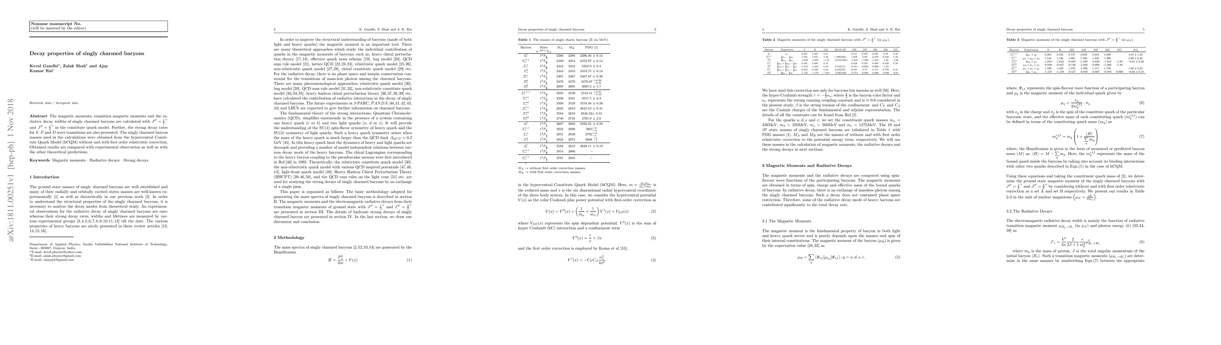 The paper presents a comprehensive calculation of decay properties of singly charmed baryons using the hCQM, including magnetic moments, transition magnetic moments, radiative decay widths, and strong decay rates.