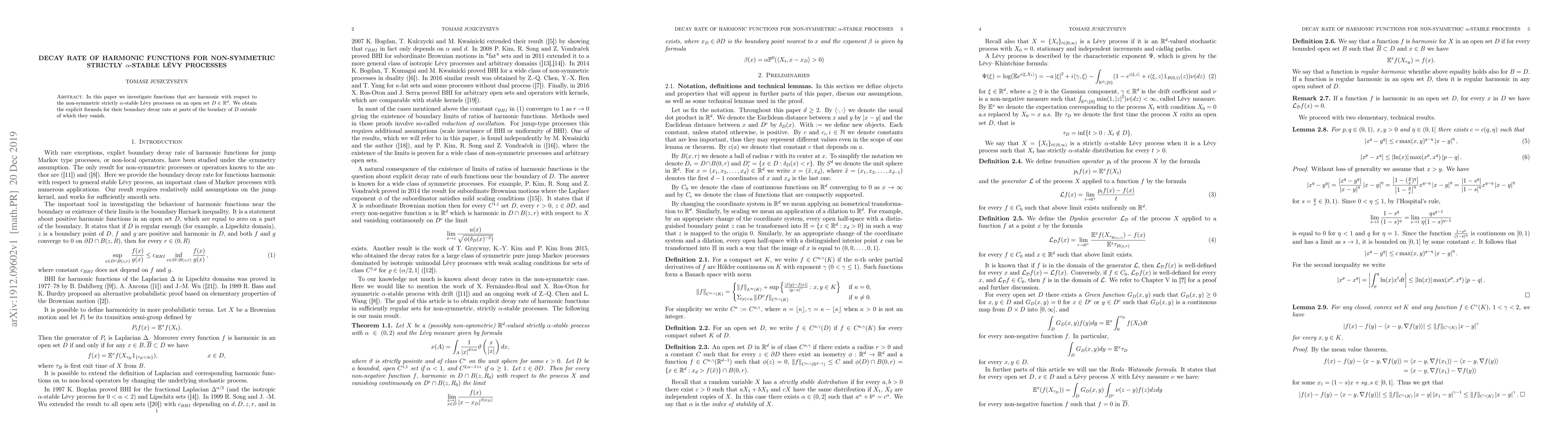 In this paper we investigate functions that are harmonic with respect to the non-symmetric strictly $\alpha$-stable L\'evy processes on an open set $D \in \mathbb{R}^d$. We obtain the explicit formula for their boundary decay rate at parts of the boudary of $D$ outside of which they vanish.