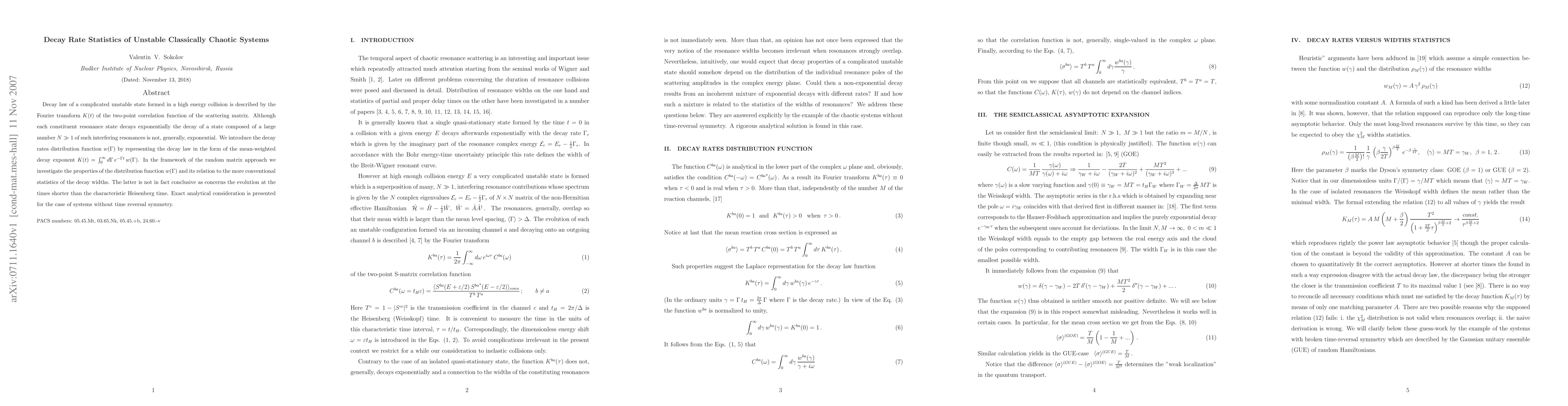 Researchers investigate how unstable classically chaotic systems decay, finding that the decay rate distribution function is more complex than expected and has implications for understanding these systems' behavior.