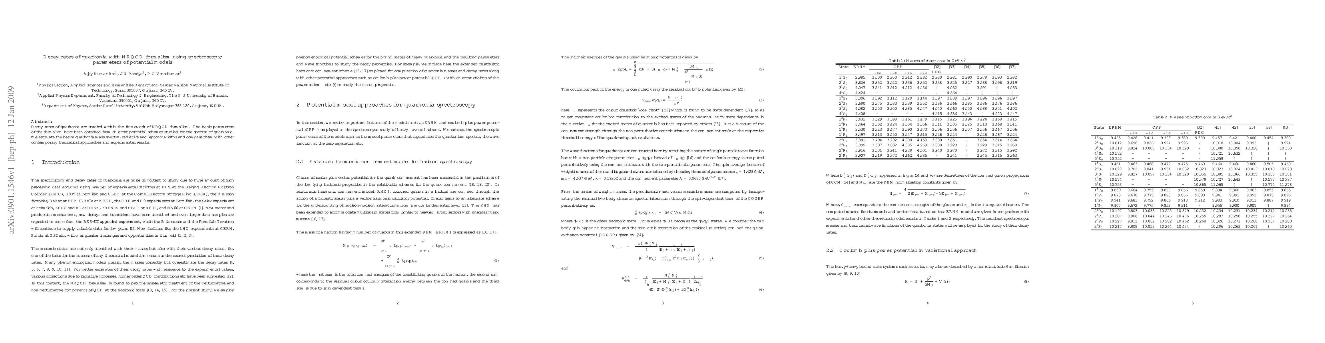 This paper investigates quarkonia decay rates using the NRQCD formalism, deriving parameters from various potential models. It estimates mass spectra, radiative, and leptonic widths, comparing findings with contemporary theories and experimental data.