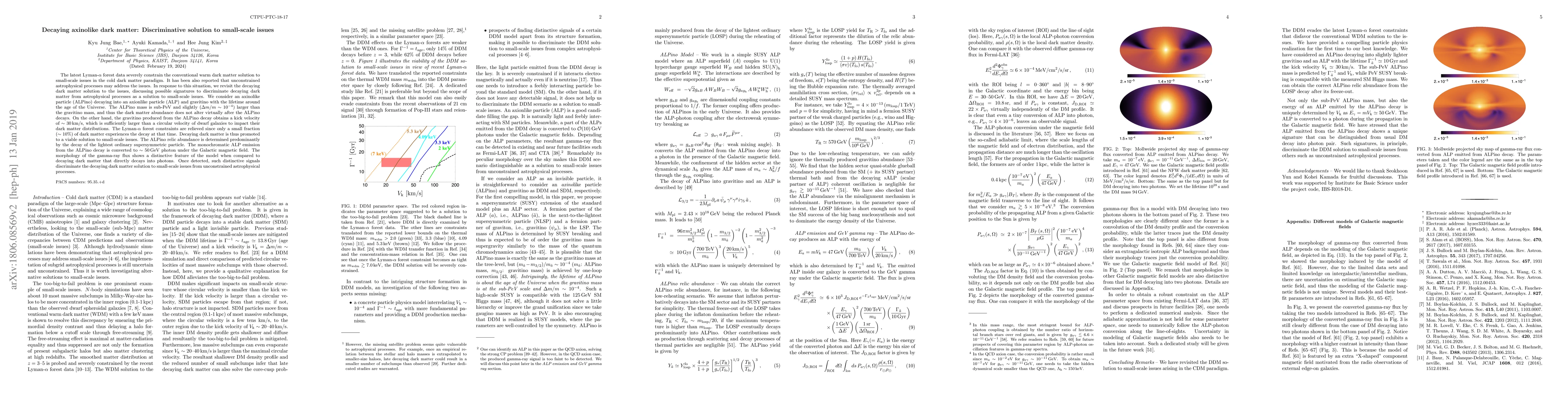 The paper revisits the decaying dark matter solution to small-scale issues, considering an axion-like particle (ALPino) decaying into an axion-like particle (ALP) and a gravitino with a lifetime around the age of the Universe. The ALPino mass is slightly larger than the gravitino mass, and the dark matter abundance remains virtually unchanged after decay.