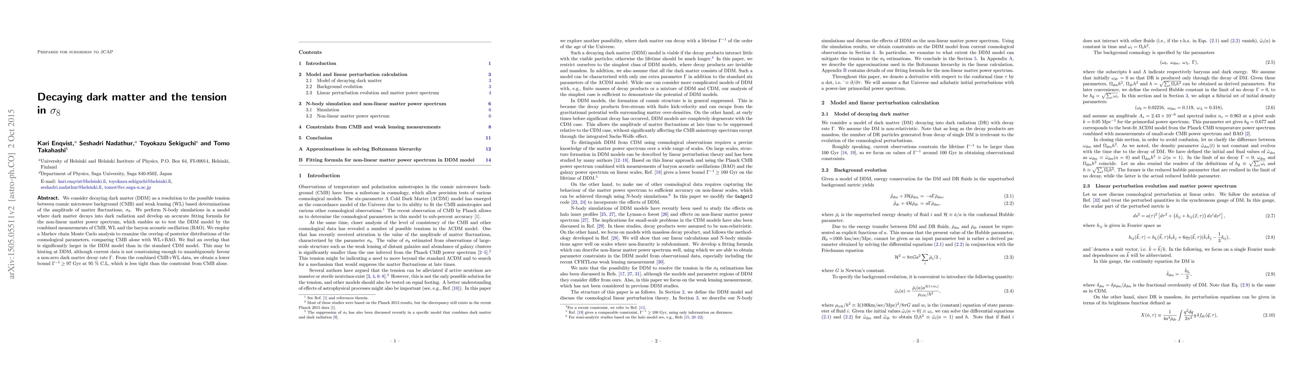 This paper explores decaying dark matter (DDM) as a potential solution to discrepancies in $\sigma_8$ measurements from CMB and weak lensing. It finds that DDM models show a significantly larger overlap in cosmological parameters compared to standard CDM models, hinting at DDM, though current data does not strongly favor a non-zero decay rate.