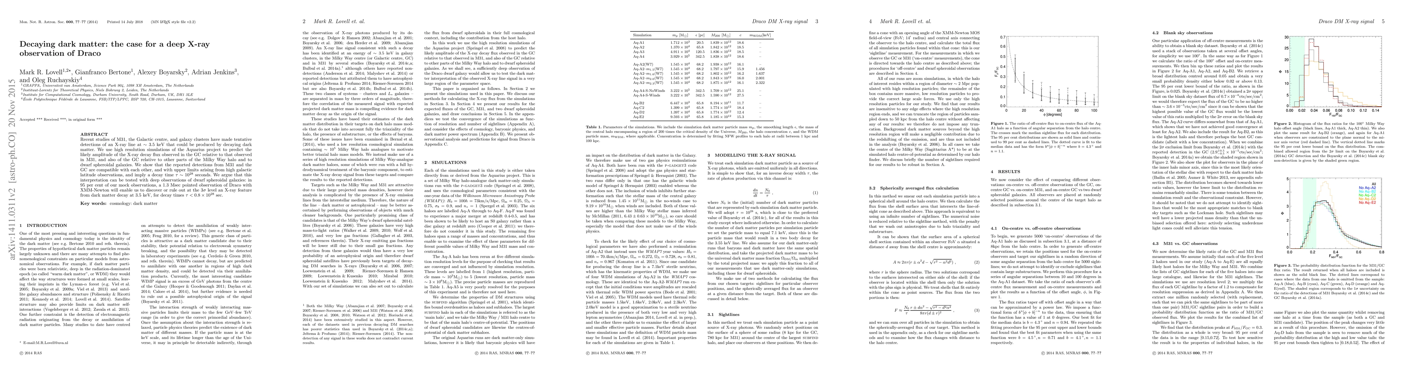 This paper investigates the potential of detecting an X-ray line at ~3.5 keV from decaying dark matter, suggesting that deep X-ray observations of the dwarf galaxy Draco could confirm or refute this hypothesis. Simulations predict that a 1.3 Msec observation of Draco with XMM-Newton could decisively reveal or rule out such an X-ray feature for decay times less than 0.8x10^28 seconds.