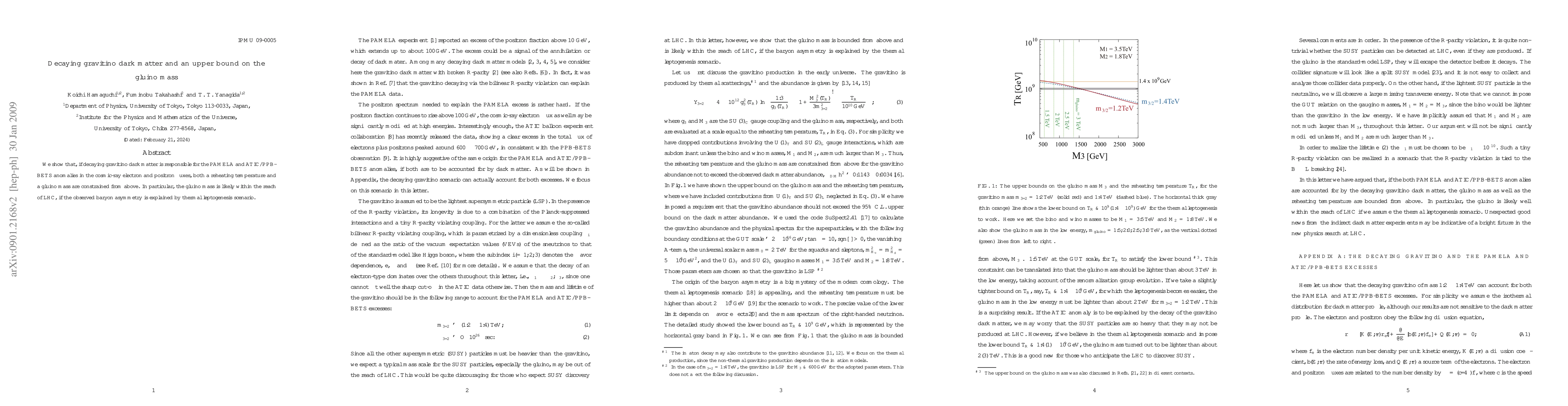 Summary: This paper demonstrates that decaying gravitino dark matter could explain cosmic-ray anomalies, imposing an upper bound on the gluino mass, which may be detectable by the LHC if thermal leptogenesis explains the observed baryon asymmetry.