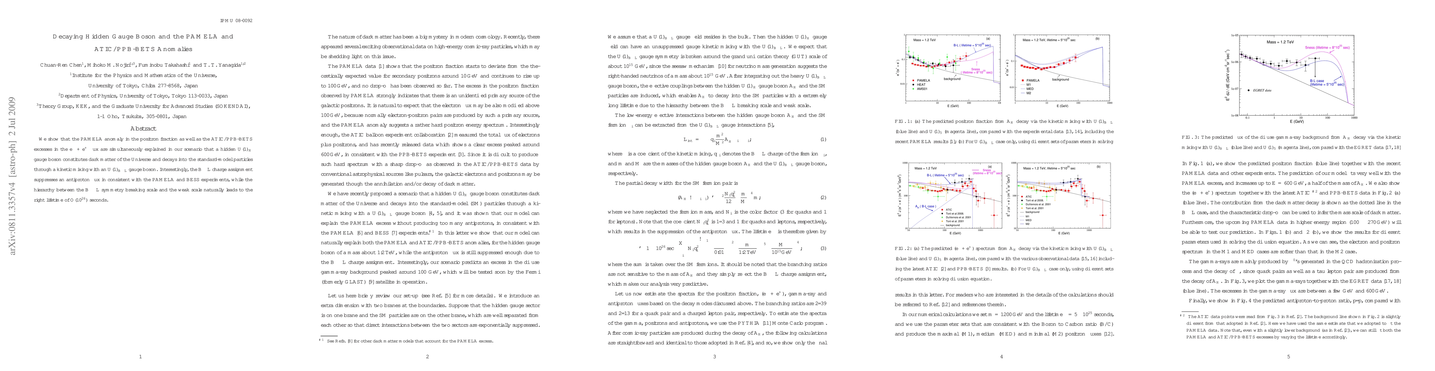 The paper introduces a new dark matter model based on a decaying hidden gauge boson, explaining cosmic-ray anomalies via kinetic mixing with U(1)B-L gauge boson, and provides a predictive framework for testing the model against experimental data.