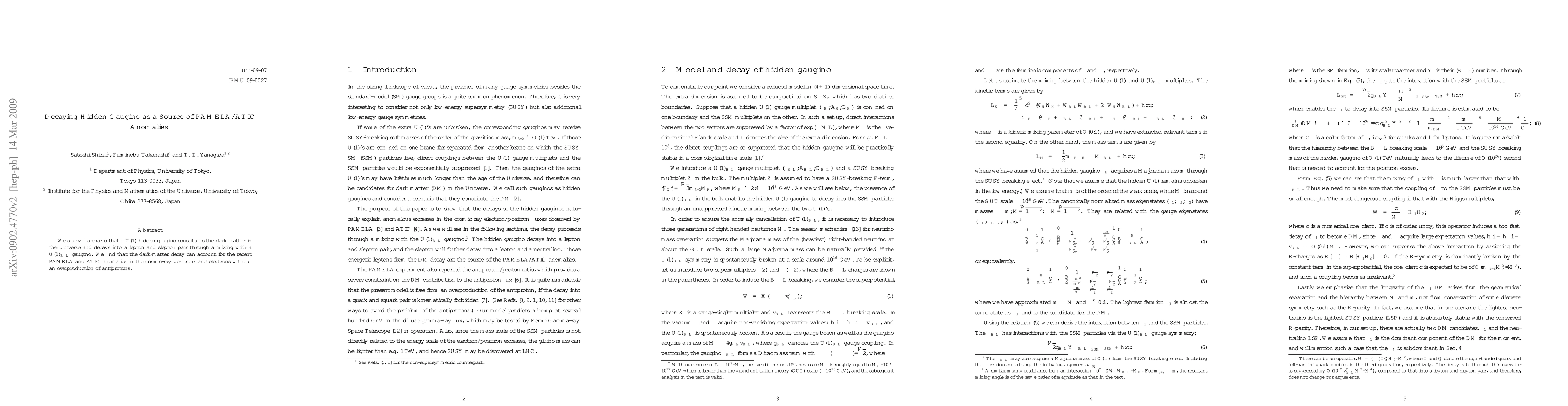 This paper explores a U(1) hidden gaugino as dark matter that decays into lepton-slepton pairs, explaining the PAMELA and ATIC cosmic-ray positron anomalies without overproducing antiprotons. The model successfully addresses observed cosmic-ray positron excesses without contradicting antiproton data.