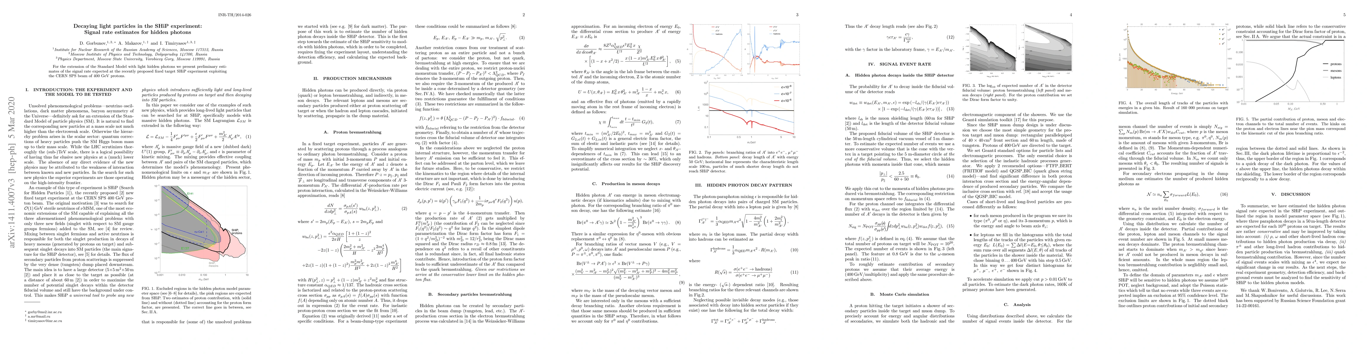For the extension of the Standard Model with light hidden photons we present preliminary estimates of the signal rate expected at the recently proposed fixed target SHiP experiment exploiting the CERN SPS beam of 400 GeV protons.