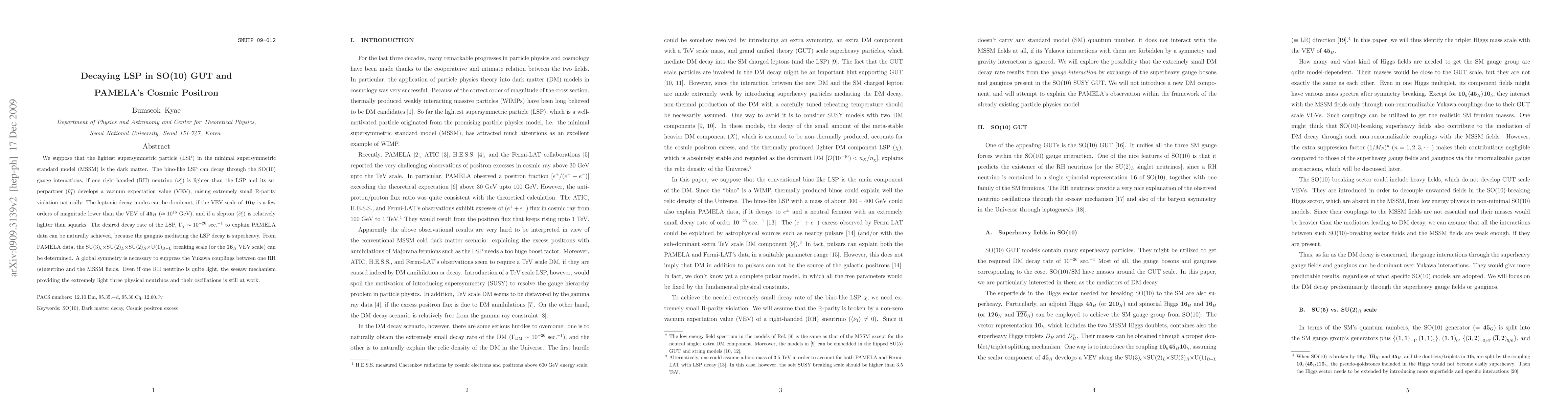 The paper introduces a novel decay mechanism for the LSP in the MSSM, utilizing SO(10) gauge interactions and a light right-handed neutrino, providing a consistent explanation for PAMELA's positron excess.