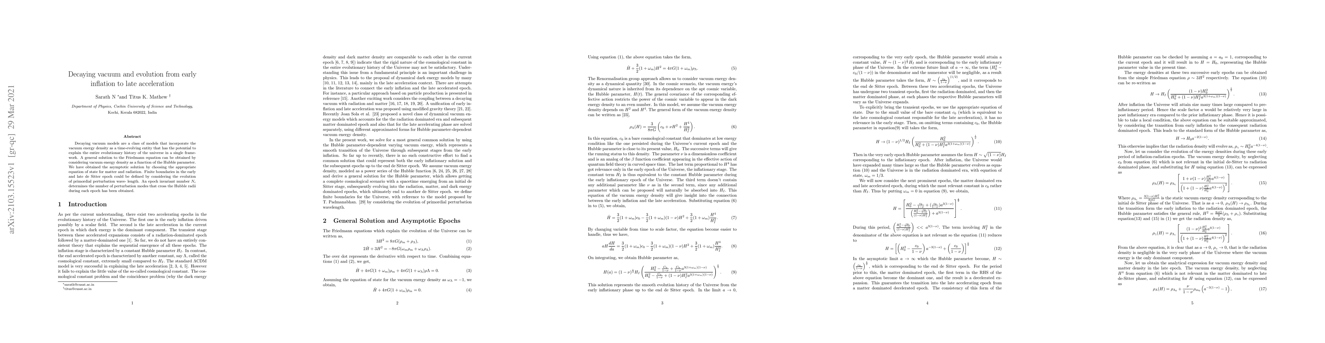 Researchers developed a decaying vacuum model that explains the universe's evolution from early inflation to late acceleration, with finite boundaries defined by primordial perturbation wavelength evolution.