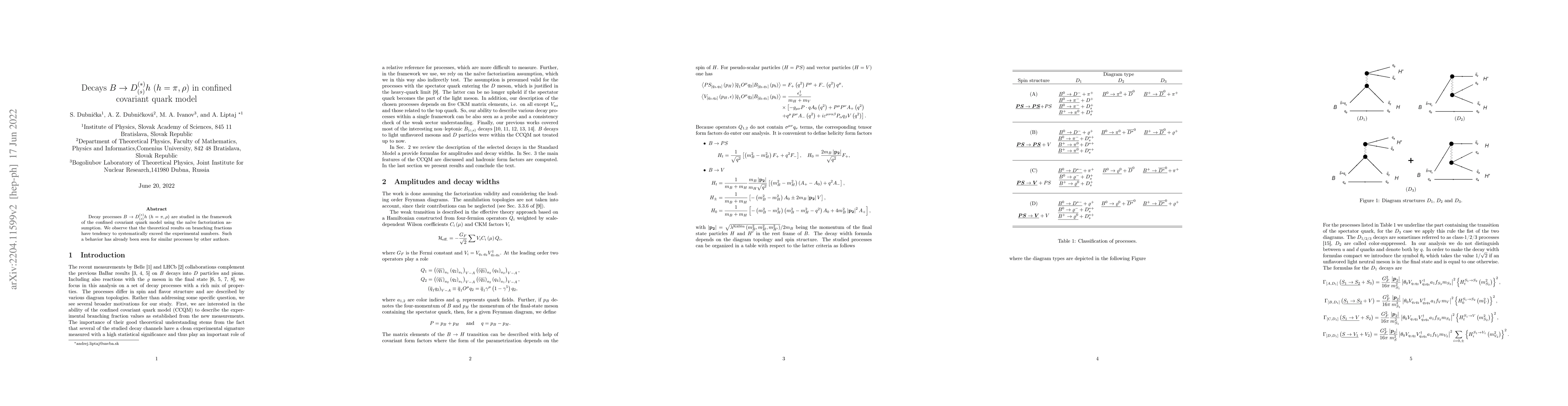Decay processes $B\rightarrow D_{\left(s\right)}^{\left(*\right)}h$ ($h=\pi,\rho$) are studied in the framework of the confined covariant quark model using the na\"{i}ve factorization assumption. We observe that the theoretical results on branching fractions have tendency to systematically exceed the experimental numbers. Such a behavior has already been seen for similar processes by other authors.