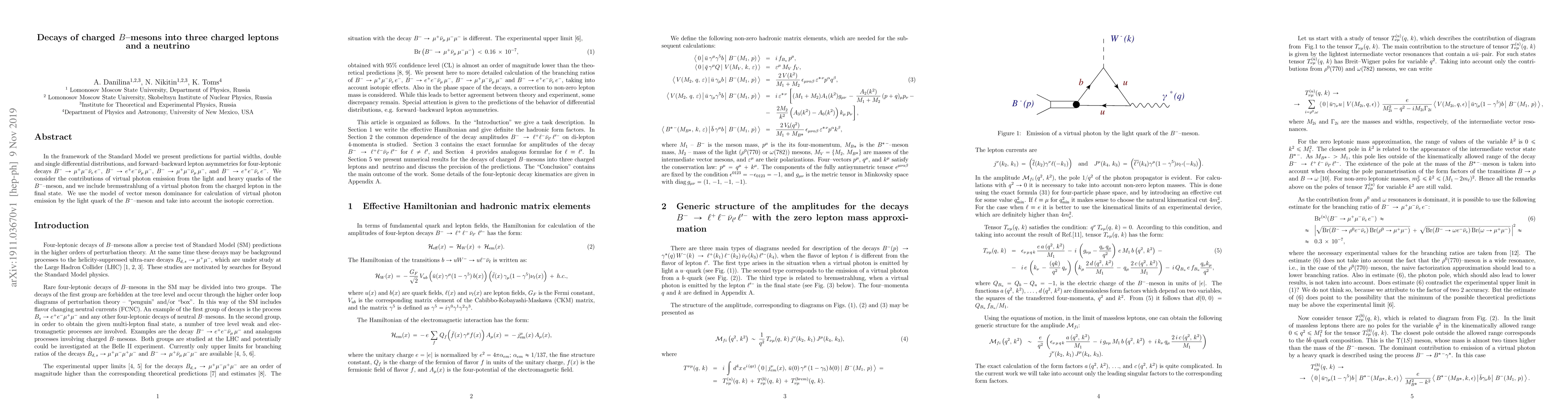 This paper predicts decay rates for four-leptonic B-meson decays into charged leptons and a neutrino, considering various theoretical effects. It provides detailed calculations for partial widths, differential distributions, and lepton asymmetries in the Standard Model framework.