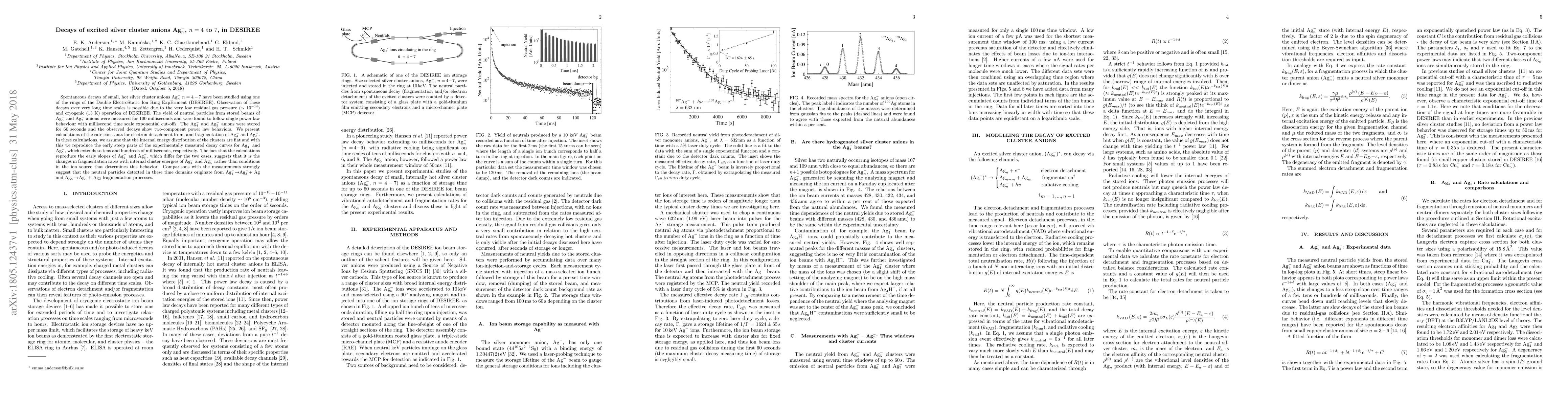 This study investigates the spontaneous decays of excited silver cluster anions Ag$_{n}$, $n=4-7$, using DESIREE, revealing single power law behavior with millisecond exponential cut-offs for Ag$_{6}$ and Ag$_{7}$ and two-component power law behaviors for Ag$_{4}$ and Ag$_{5}$. The calculations suggest that the differing decay slopes are due to changes in fragmentation rates with internal cluster energies rather than ion source conditions.