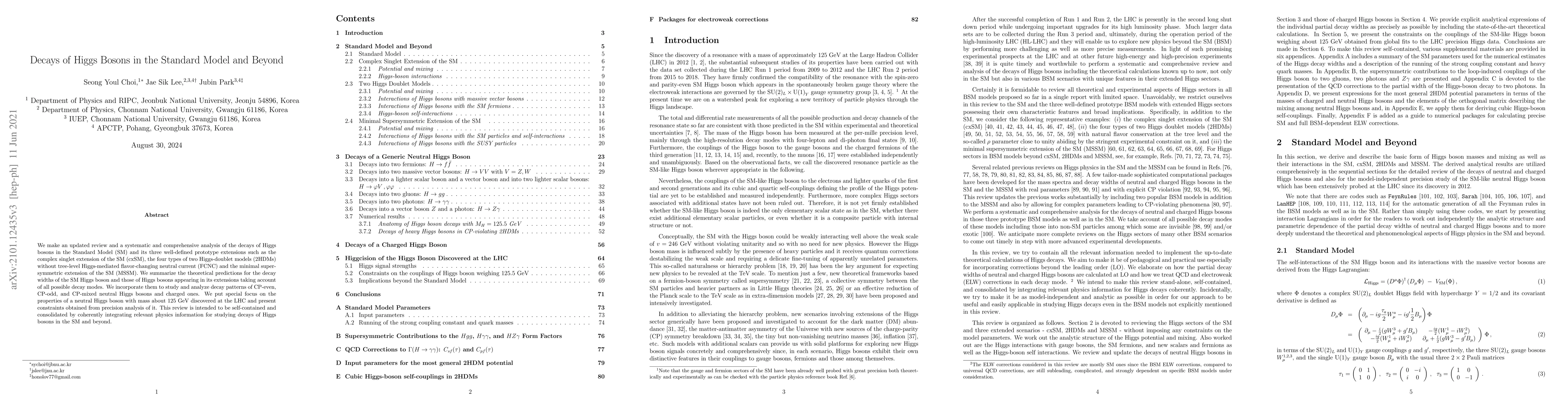 We make an updated review and a systematic and comprehensive analysis of the decays of Higgs bosons in the Standard Model (SM) and its three well-defined prototype extensions such as the complex singlet extension of the SM (cxSM), the four types of two Higgs-doublet models (2HDMs) without tree-level Higgs-mediated flavor-changing neutral current (FCNC) and the minimal supersymmetric extension of the SM (MSSM). We summarize the theoretical predictions for the decay widths of the SM Higgs boson and those of Higgs bosons appearing in its extensions taking account of all possible decay modes. We incorporate them to study and analyze decay patterns of CP-even, CP-odd, and CP-mixed neutral Higgs bosons and charged ones. We put special focus on the properties of a neutral Higgs boson with mass about 125 GeV discovered at the LHC and present constraints obtained from precision analysis of it. This review is intended to be self-contained and consolidated by coherently integrating relevant physics information for studying decays of Higgs bosons in the SM and beyond.