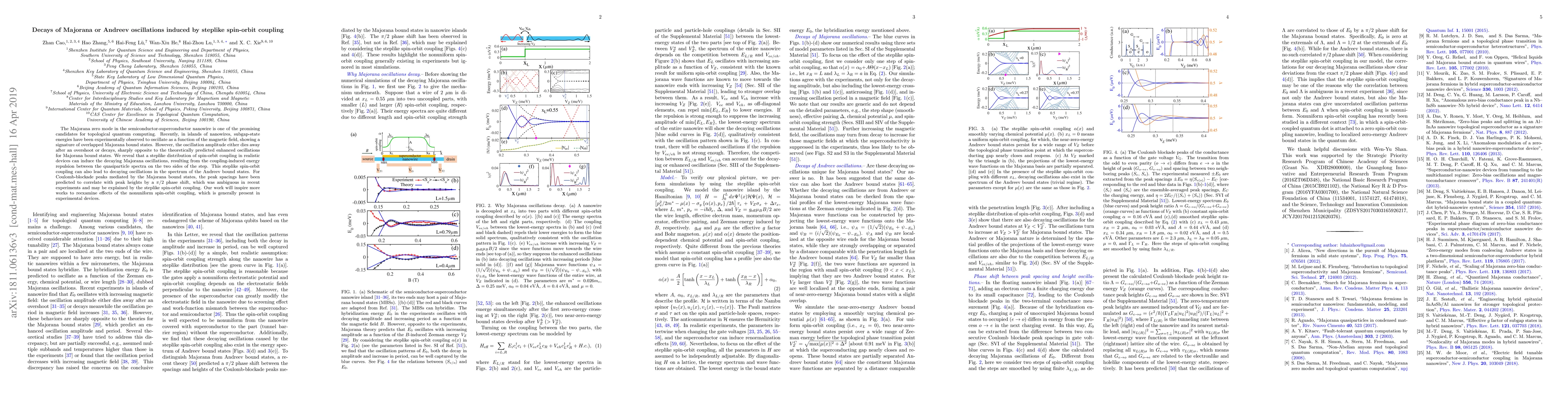 The Majorana zero mode in the semiconductor-superconductor nanowire is one of the promising candidates for topological quantum computing. Recently, in islands of nanowires, subgap-state energies have been experimentally observed to oscillate as a function of the magnetic field, showing a signature of overlapped Majorana bound states. However, the oscillation amplitude either dies away after an overshoot or decays, sharply opposite to the theoretically predicted enhanced oscillations for Majorana bound states. We reveal that a steplike distribution of spin-orbit coupling in realistic devices can induce the decaying Majorana oscillations, resulting from the coupling-induced energy repulsion between the quasiparticle spectra on the two sides of the step. This steplike spin-orbit coupling can also lead to decaying oscillations in the spectrum of the Andreev bound states. For Coulomb-blockade peaks mediated by the Majorana bound states, the peak spacings have been predicted to correlate with peak heights by a $\pi/2$ phase shift, which was ambiguous in recent experiments and may be explained by the steplike spin-orbit coupling. Our work will inspire more works to reexamine effects of the nonuniform spin-orbit coupling, which is generally present in experimental devices.