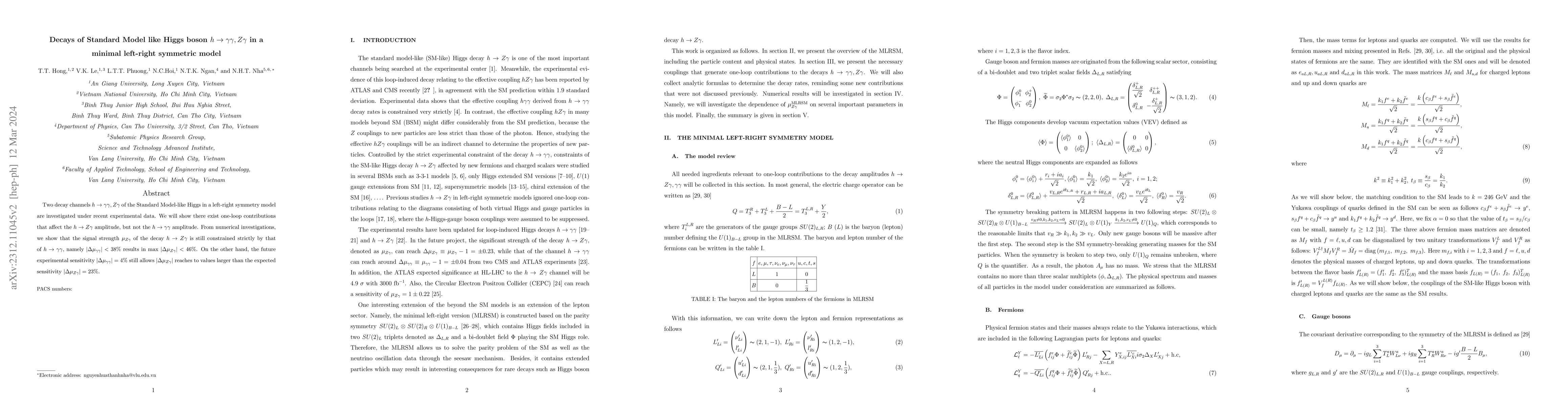 This paper investigates the decay channels $h \rightarrow \gamma\gamma$ and $h \rightarrow Z\gamma$ within a minimal left-right symmetric model, revealing one-loop contributions affecting the latter but not the former. The study concludes that the signal strength of $h \rightarrow Z\gamma$ remains constrained by that of $h \rightarrow \gamma\gamma$, with future experimental sensitivities allowing for significant deviations.