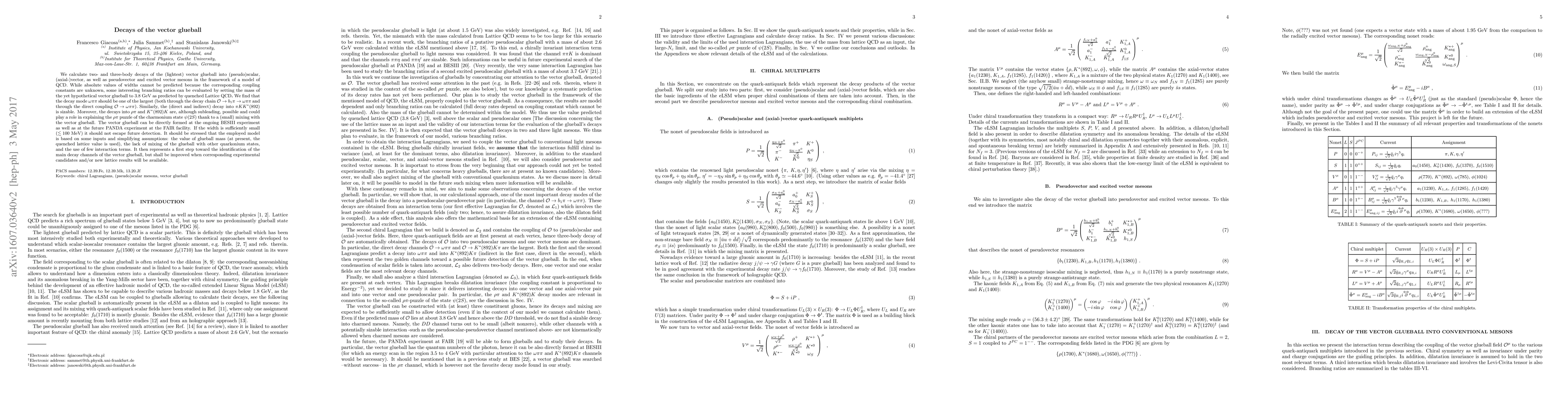 We calculate two- and three-body decays of the (lightest) vector glueball into (pseudo)scalar, (axial-)vector, as well as pseudovector and excited vector mesons\textbf{ }in the framework of a model of QCD. While absolute values of widths cannot be predicted because the corresponding coupling constants are unknown, some interesting branching ratios can be evaluated\textbf{ }by setting the mass of the yet hypothetical vector glueball to $3.8$ GeV as predicted by quenched Lattice QCD\textbf{.} We find that the decay mode $\omega\pi\pi$ should be one of the largest (both through the decay chain $\mathcal{O}\rightarrow b_{1}\pi\rightarrow$ $\omega\pi\pi$ and through the direct coupling $\mathcal{O}\rightarrow\omega\pi\pi$)$.$ Similarly, the (direct and indirect) decay into $\pi KK^{\ast}(892)$ is sizable. Moreover, the decays into $\rho\pi$ and $K^{\ast}(892)K$ are, although subleading, possible and could play a role in explaining the $\rho\pi$ puzzle of the charmonium state $\psi(2S)$ thank to a (small) mixing with the vector glueball. The vector glueball can be directly formed at the ongoing BESIII experiment as well as at the future PANDA experiment at the FAIR facility. If the width is sufficiently small ($\lesssim100$ MeV) it should not escape future detection. It should be stressed that the employed model is based on some inputs and simplifying assumptions: the value of glueball mass (at present, the quenched lattice value is used), the lack of mixing of the glueball with other quarkonium states, and the use of few interaction terms. It then represents a first step toward the identification of the main decay channels of the vector glueball, but shall be improved when corresponding experimental candidates and/or new lattice results will be available.