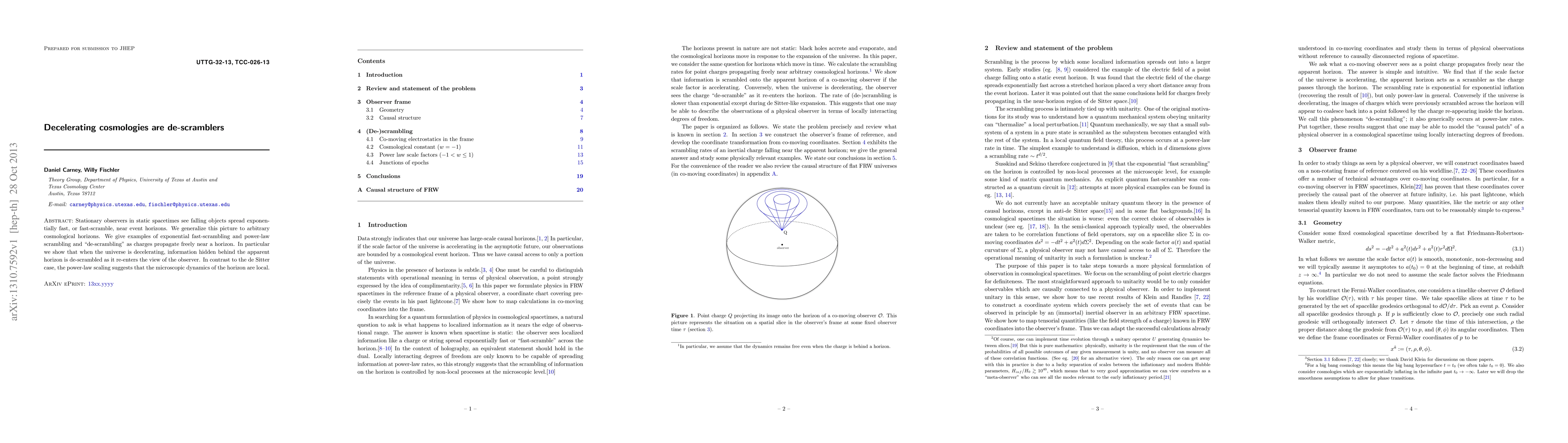 Stationary observers in static spacetimes see falling objects spread exponentially fast, or fast-scramble, near event horizons. We generalize this picture to arbitrary cosmological horizons. We give examples of exponential fast-scrambling and power-law scrambling and "de-scrambling" as charges propagate freely near a horizon. In particular we show that when the universe is decelerating, information hidden behind the apparent horizon is de-scrambled as it re-enters the view of the observer. In contrast to the de Sitter case, the power-law scaling suggests that the microscopic dynamics of the horizon are local.