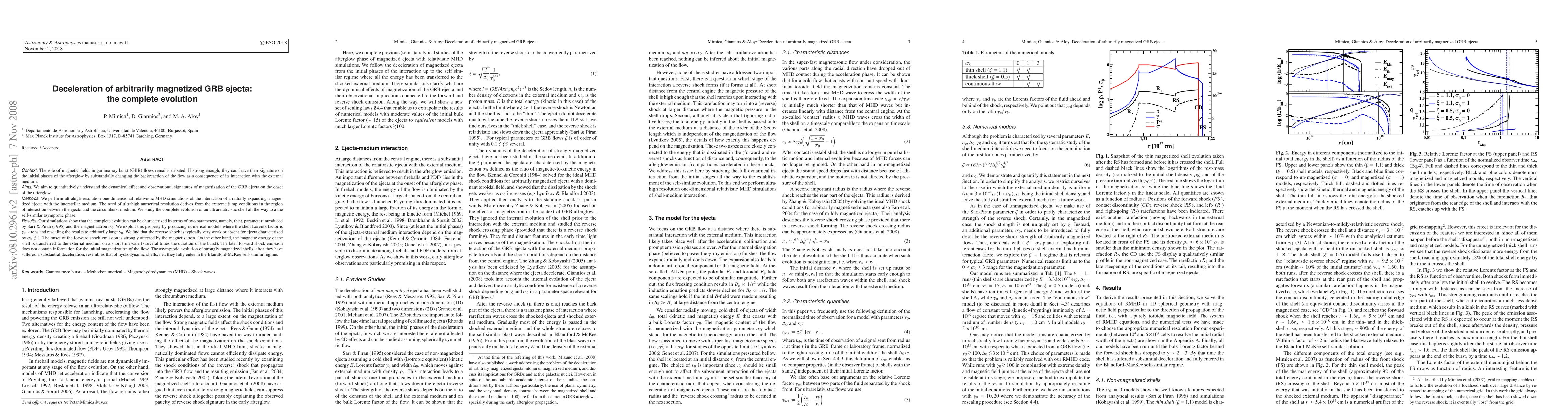 Researchers simulate the interaction between magnetized GRB ejecta and interstellar medium to understand its effect on afterglow onset and evolution. They find that strongly magnetized shells often undergo substantial deceleration, with magnetic energy transferred to the external medium.