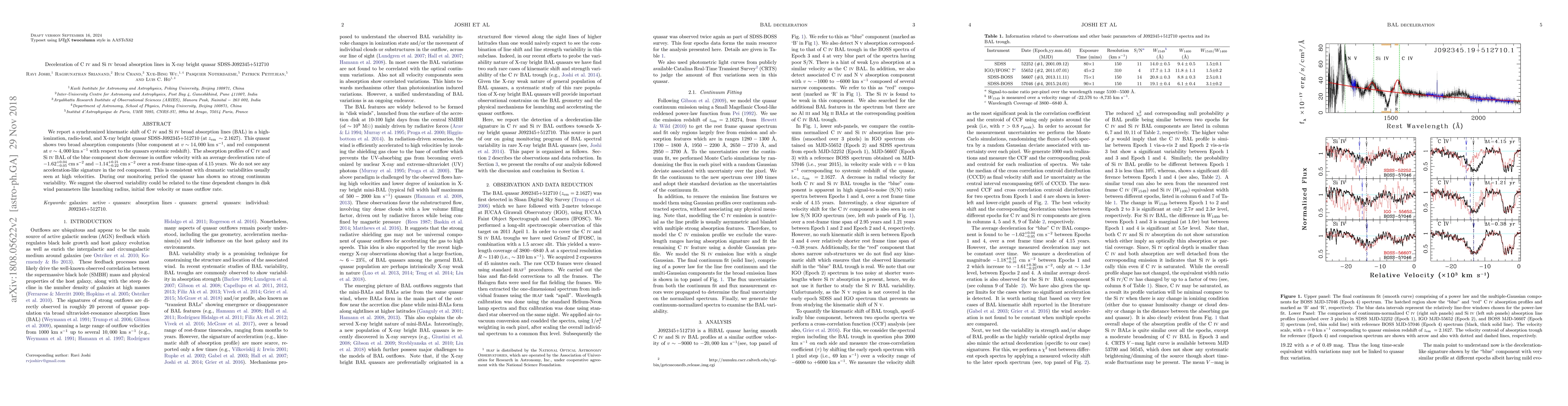 This study reports a deceleration in the outflow velocity of CIV and SiIV broad absorption lines in the quasar SDSS-J092345+512710, with an average deceleration rate of -1.62 and -1.14 cm/s² respectively over 4.15 years, suggesting variability in disk wind parameters.