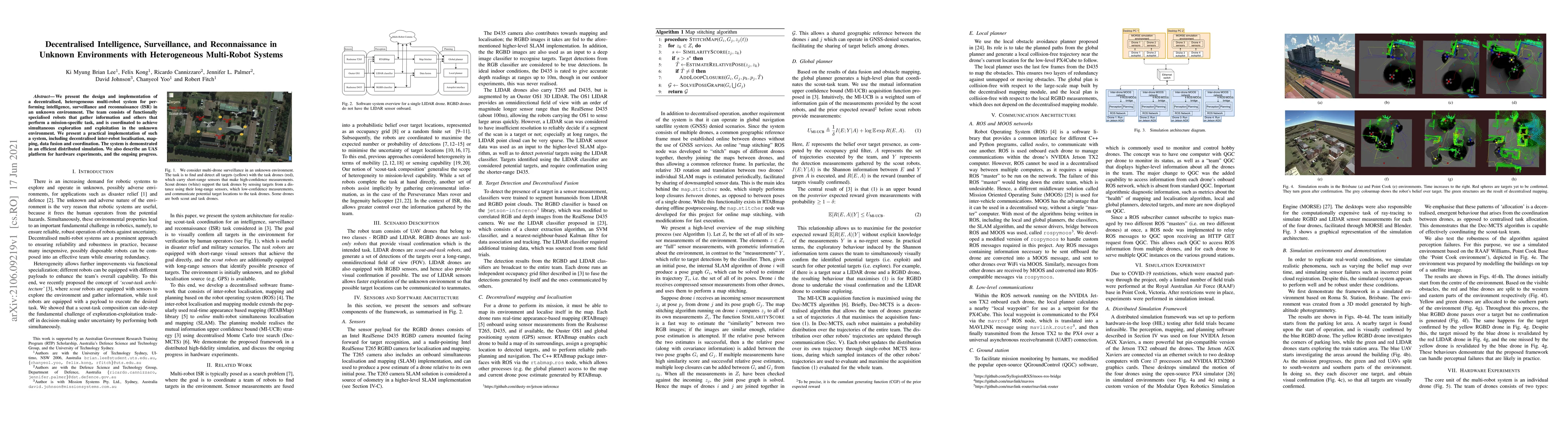 This paper details the design and implementation of a decentralised multi-robot system for intelligence, surveillance, and reconnaissance in unknown environments. The system uses functionally specialised robots for exploration and mission-specific tasks, coordinated through decentralised localisation, mapping, and data fusion, demonstrated via simulation and hardware experiments.