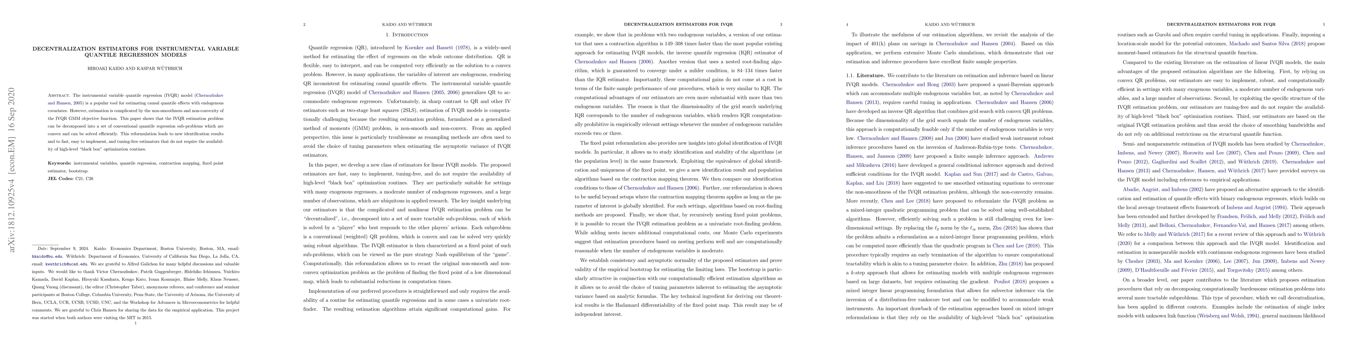 This paper proposes new decentralization estimators for instrumental variable quantile regression models that simplify the estimation process by decomposing the problem into convex quantile regression sub-problems, resulting in fast, easy-to-implement, and tuning-free solutions.