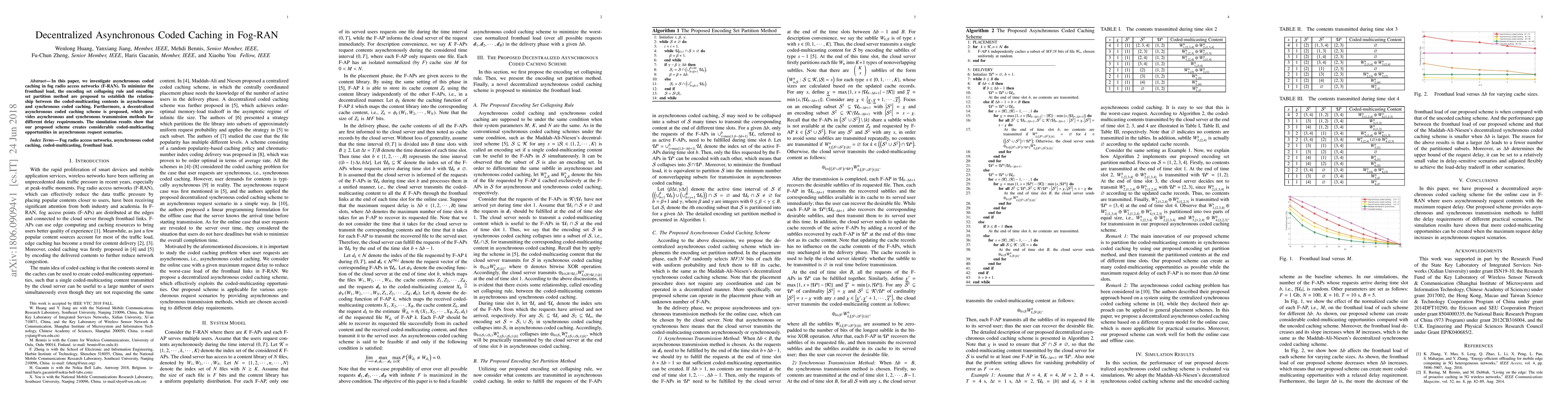 This paper proposes decentralized asynchronous coded caching for fog radio access networks to minimize fronthaul load, utilizing encoding set collapsing and partitioning methods. The introduced scheme offers both asynchronous and synchronous transmission options, demonstrating significant coded-multicasting benefits in asynchronous request scenarios.