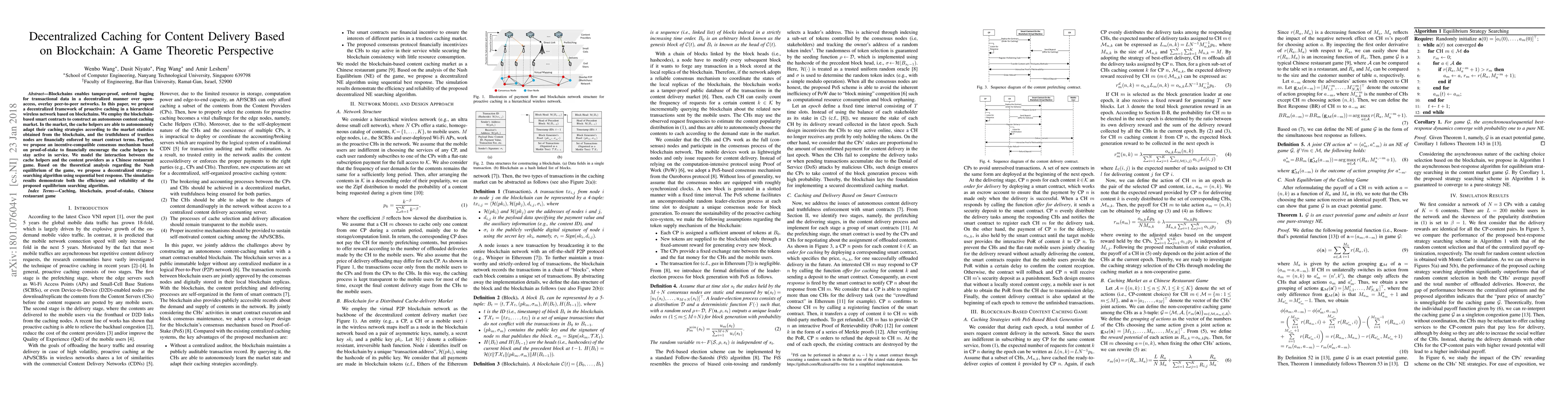 This paper proposes a blockchain-based decentralized caching framework for hierarchical wireless networks, utilizing smart contracts to create an autonomous content caching market. It introduces an incentive-compatible consensus mechanism to encourage active caching and models the interaction between cache helpers and content providers using a Chinese restaurant game, concluding with a decentralized strategy-searching algorithm validated through simulations.