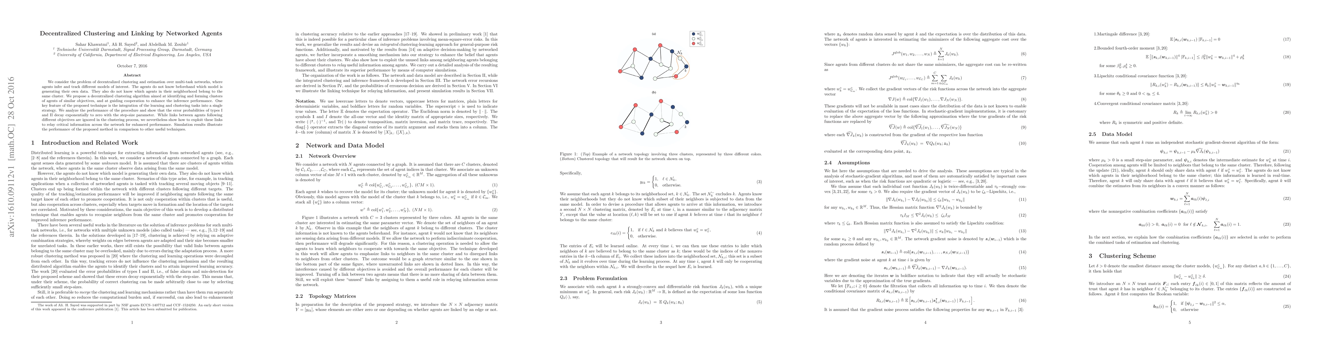 We consider the problem of decentralized clustering and estimation over multi-task networks, where agents infer and track different models of interest. The agents do not know beforehand which model is generating their own data. They also do not know which agents in their neighborhood belong to the same cluster. We propose a decentralized clustering algorithm aimed at identifying and forming clusters of agents of similar objectives, and at guiding cooperation to enhance the inference performance. One key feature of the proposed technique is the integration of the learning and clustering tasks into a single strategy. We analyze the performance of the procedure and show that the error probabilities of types I and II decay exponentially to zero with the step-size parameter. While links between agents following different objectives are ignored in the clustering process, we nevertheless show how to exploit these links to relay critical information across the network for enhanced performance. Simulation results illustrate the performance of the proposed method in comparison to other useful techniques.