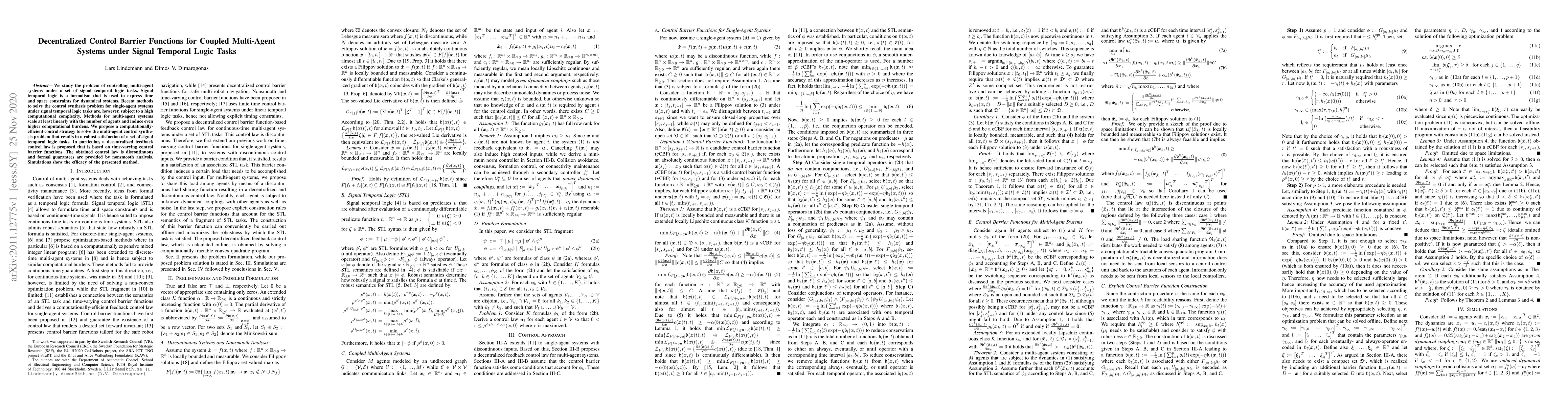 This paper proposes a decentralized control strategy using time-varying control barrier functions for multi-agent systems to efficiently satisfy signal temporal logic tasks, offering robust performance with lower computational complexity compared to existing methods. The approach employs nonsmooth analysis to provide formal guarantees and is demonstrated effective through simulations.
