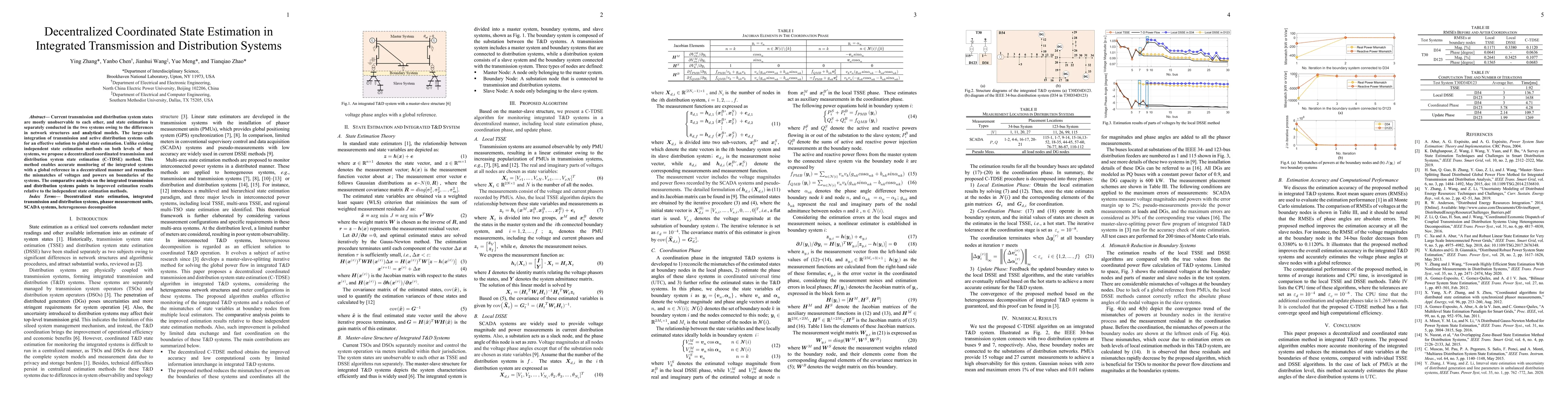 This paper proposes a decentralized coordinated state estimation method (C-TDSE) for integrated transmission and distribution systems, enabling accurate global monitoring and reconciling voltage and power mismatches at system boundaries, outperforming independent state estimation methods.