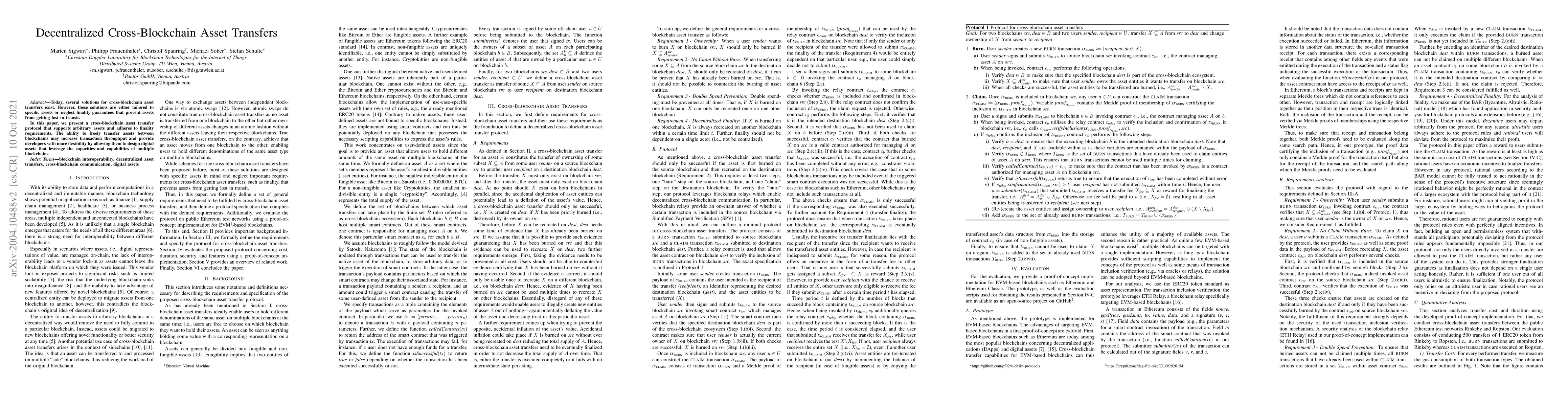 This paper proposes a cross-blockchain asset transfer protocol that supports arbitrary assets and ensures finality guarantees, aiming to increase transaction throughput and flexibility for developers.