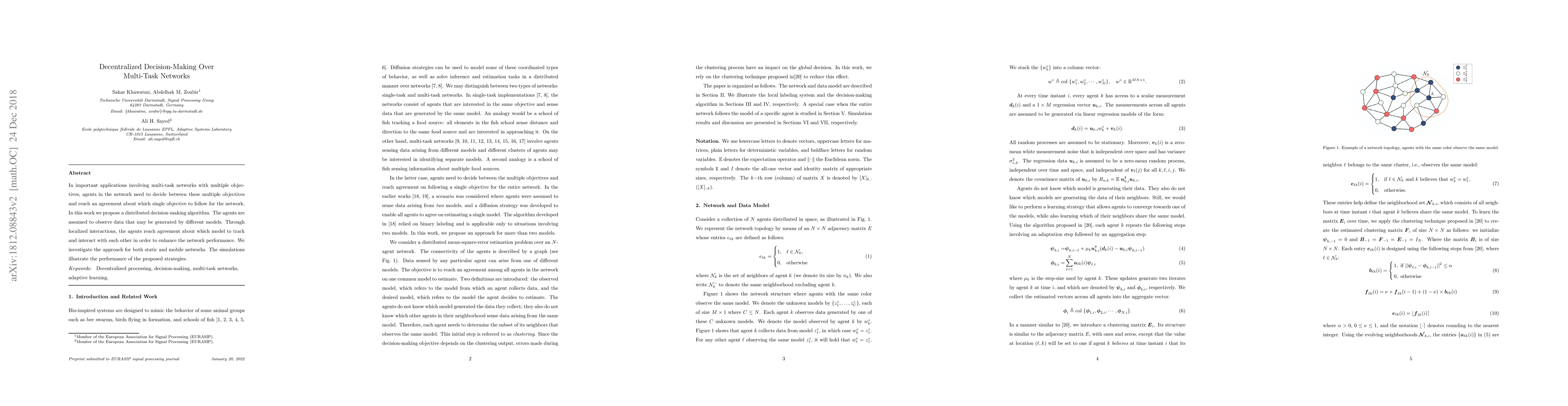 This paper proposes a distributed decision-making algorithm for agents in multi-task networks to agree on a single objective, considering data generated by different models. The approach enhances network performance through localized interactions and is tested on both static and mobile networks.