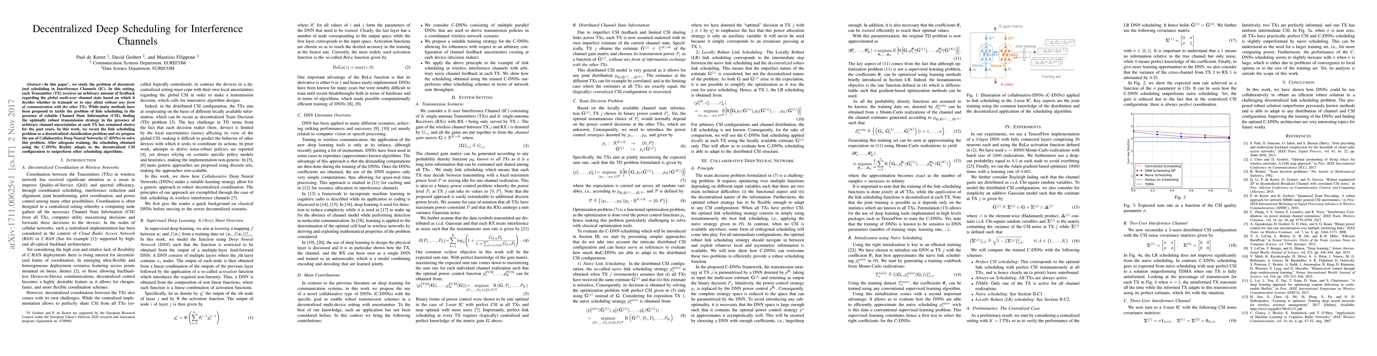 Researchers developed a new method called Collaborative Deep Neural Networks to solve the problem of decentralized scheduling in Interference Channels, which allows transmitters to adapt to changing channel conditions without communication with each other.