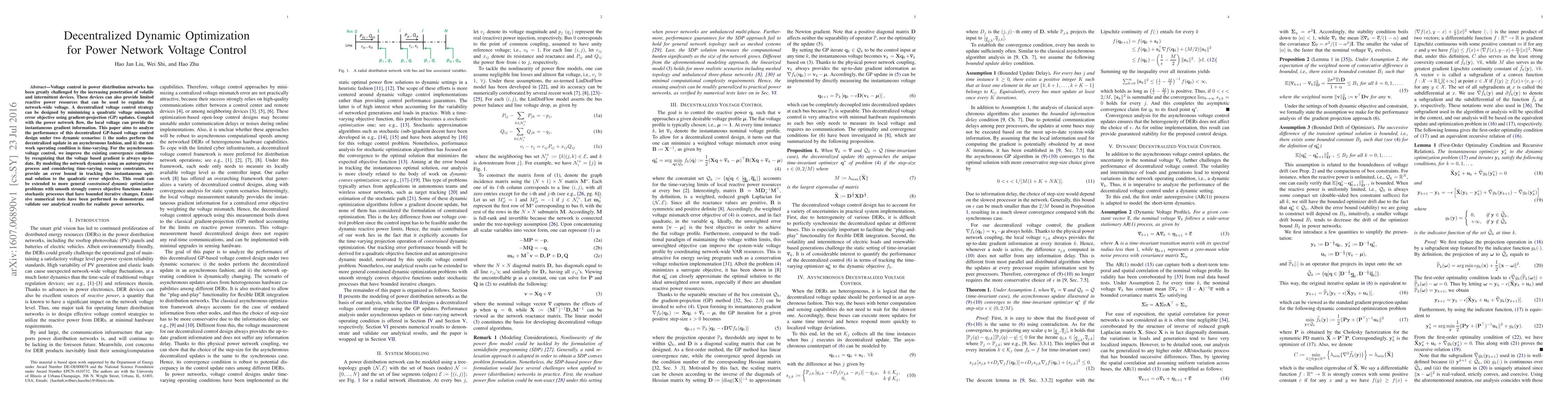 This paper proposes a decentralized gradient-projection method for voltage control in power networks, focusing on handling asynchronous updates and time-varying conditions. It provides an error bound for tracking optimal solutions under dynamic scenarios and validates the approach through extensive numerical tests.