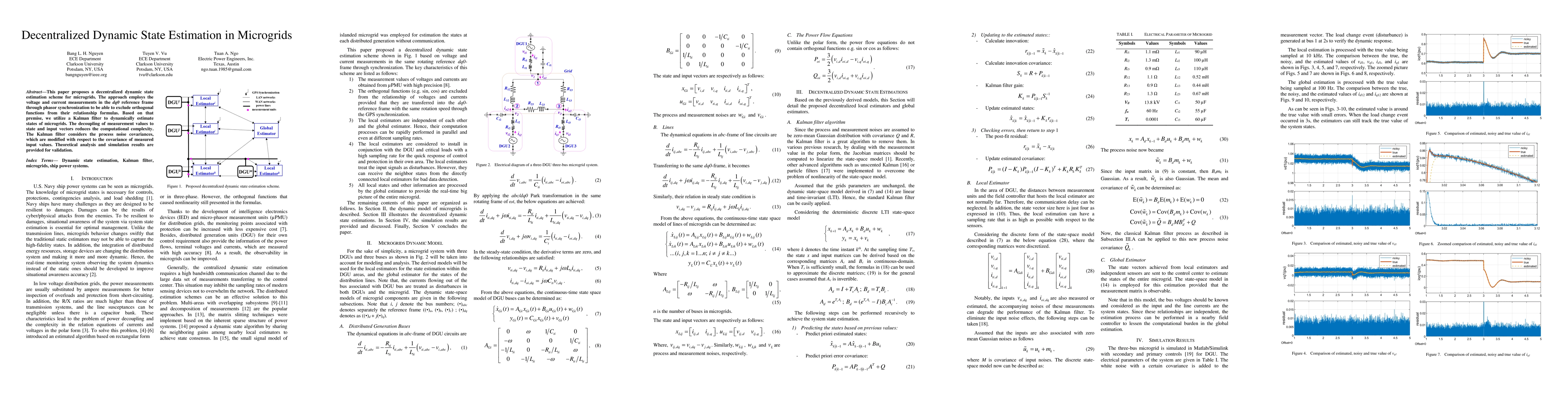 This paper introduces a decentralized dynamic state estimation method for microgrids using voltage and current measurements in the dq0 frame, employing a Kalman filter to reduce computational complexity and validate the approach through theoretical analysis and simulations.