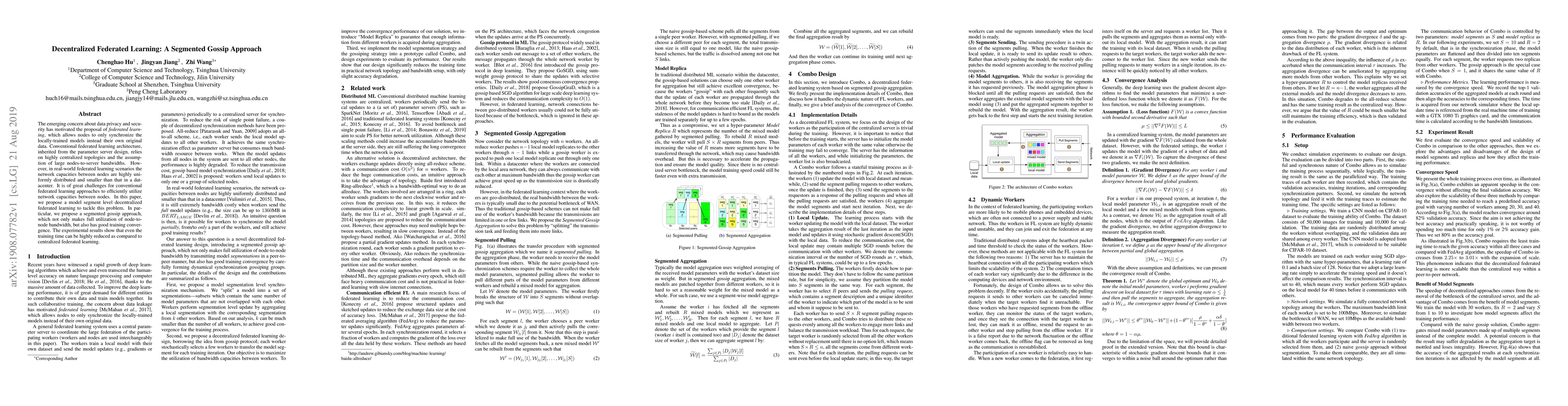 The emerging concern about data privacy and security has motivated the proposal of federated learning, which allows nodes to only synchronize the locally-trained models instead their own original data. Conventional federated learning architecture, inherited from the parameter server design, relies on highly centralized topologies and the assumption of large nodes-to-server bandwidths. However, in real-world federated learning scenarios the network capacities between nodes are highly uniformly distributed and smaller than that in a datacenter. It is of great challenges for conventional federated learning approaches to efficiently utilize network capacities between nodes. In this paper, we propose a model segment level decentralized federated learning to tackle this problem. In particular, we propose a segmented gossip approach, which not only makes full utilization of node-to-node bandwidth, but also has good training convergence. The experimental results show that even the training time can be highly reduced as compared to centralized federated learning.