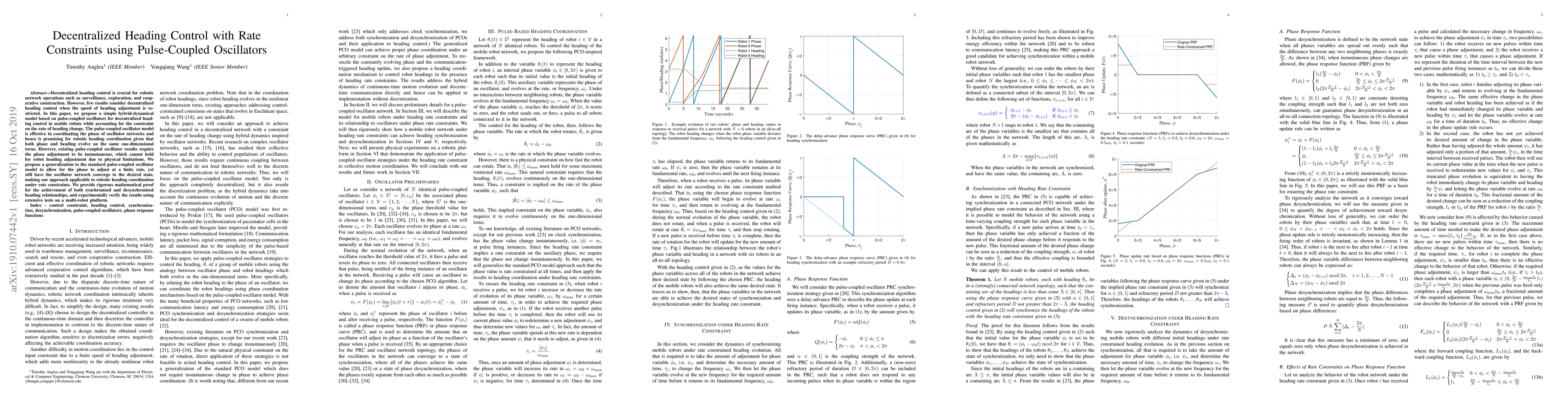 This paper proposes a decentralized heading control method for mobile robots using a generalized pulse-coupled oscillator model that accommodates rate constraints on heading adjustment. The approach ensures convergence of the oscillator network under physical limitations, validated through mathematical proofs and multi-robot experiments.