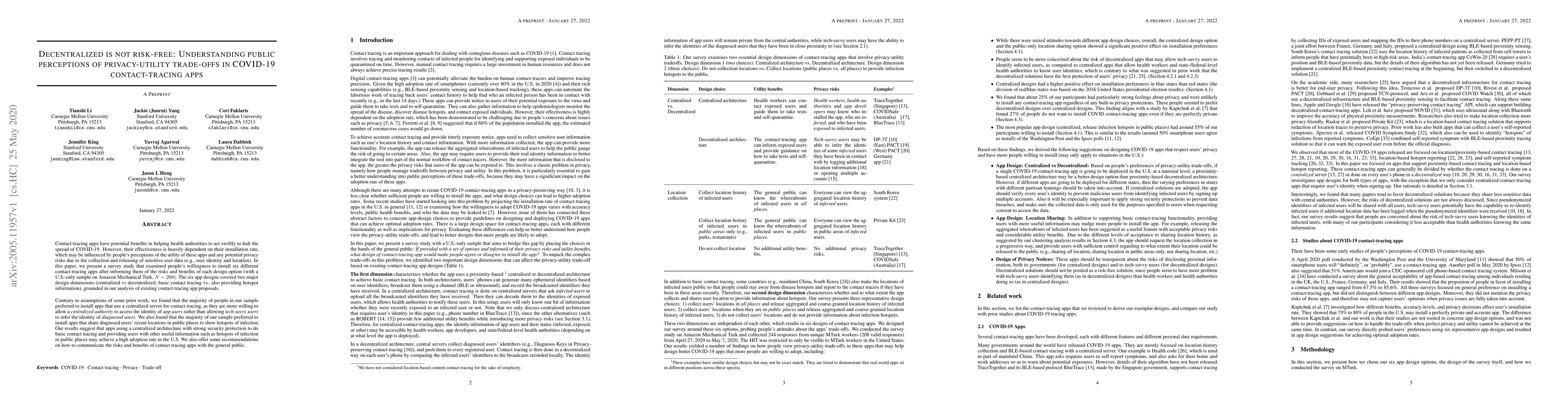 This study surveyed U.S. residents on Amazon Mechanical Turk to understand their willingness to install different COVID-19 contact-tracing apps, considering privacy-utility trade-offs. Contrary to expectations, participants preferred centralized apps over decentralized ones and were more willing to share location data to identify infection hotspots, suggesting that centralized apps with strong security might achieve higher adoption rates.