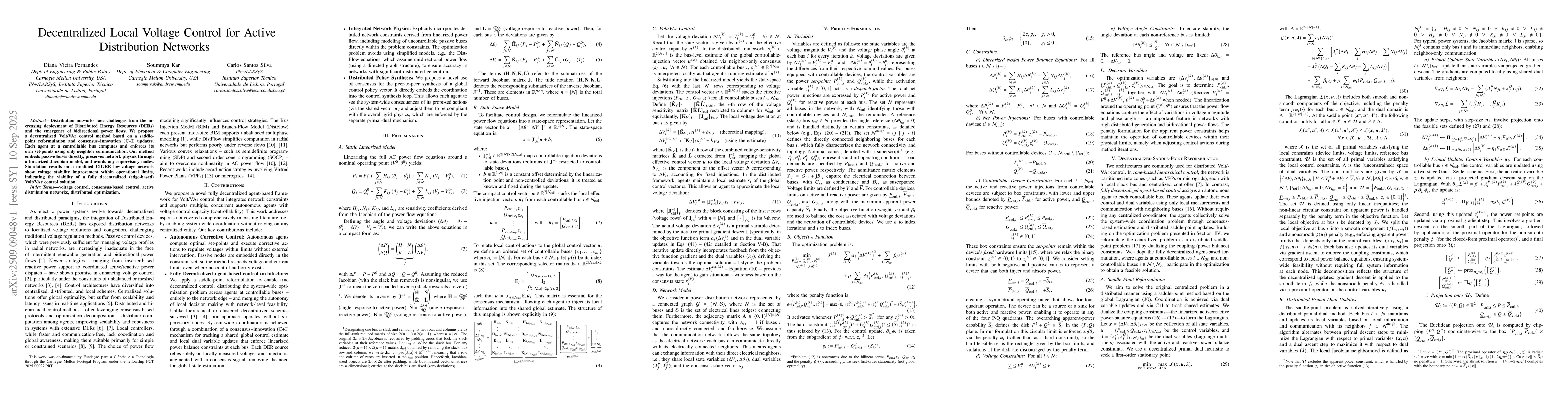 Distribution networks face challenges from the increasing deployment of Distributed Energy Resources (DERs) and the emergence of bidirectional power flows. We propose a decentralized Volt/VAr control method based on a saddle-point reformulation and consensus+innovation (C+I) updates. Each agent at a controllable bus computes and enforces its own set-points using only neighbor communication. Our method embeds passive buses directly, preserves network physics through a linearized Jacobian model, and avoids any supervisory nodes. Simulation results on a modified CIGRE low-voltage network show voltage stability improvement within operational limits, indicating the viability of a fully decentralized (edge-based) Volt/VAr control solution.