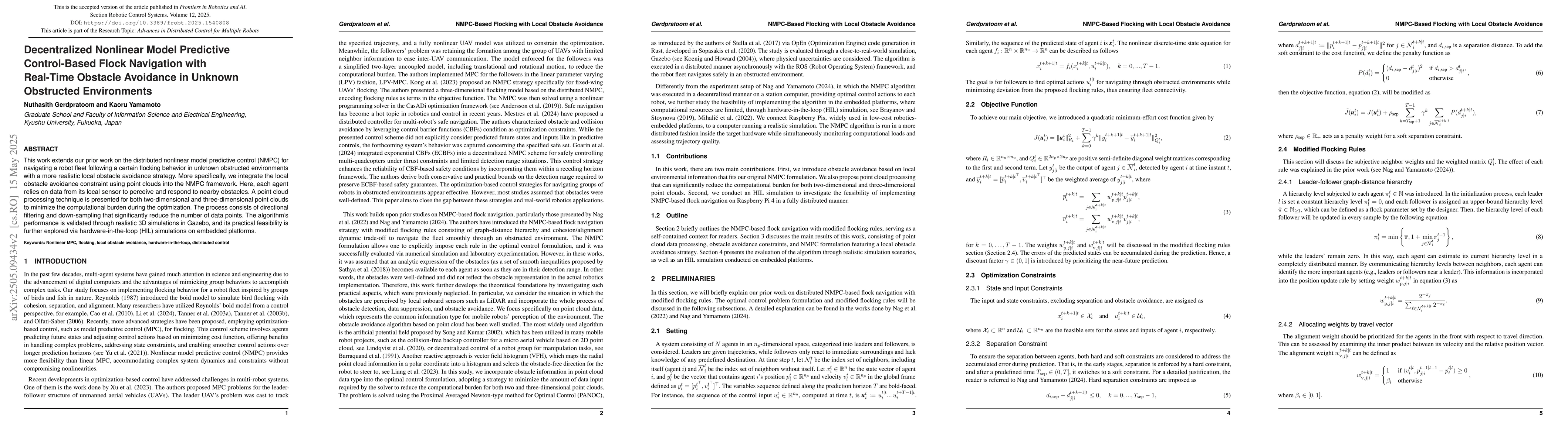 This research extends prior work by introducing a more realistic local obstacle avoidance strategy using point clouds within the NMPC framework for flock navigation in unknown environments.