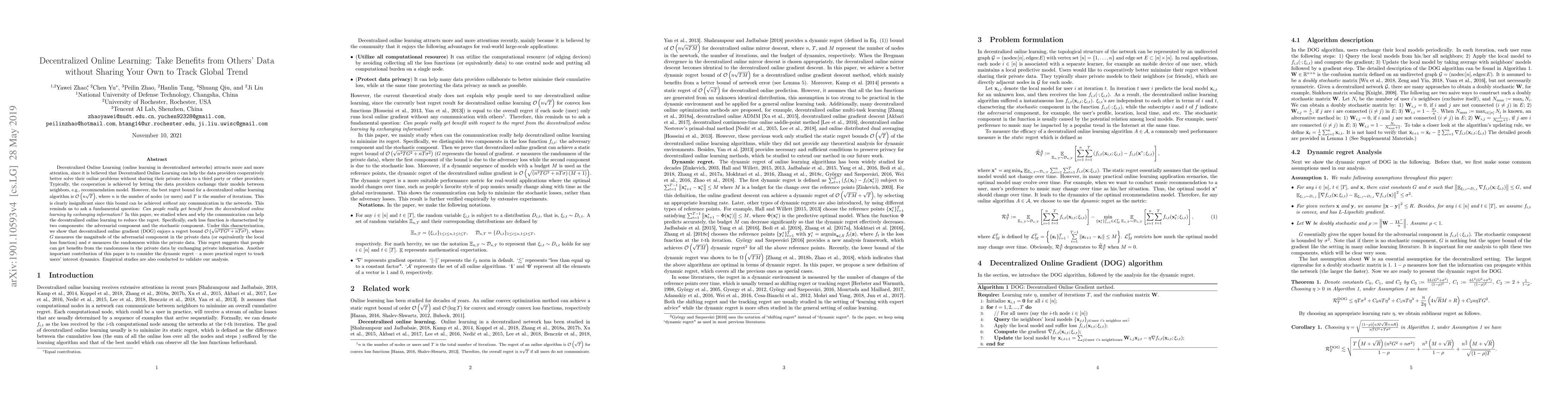 Decentralized Online Learning (online learning in decentralized networks) attracts more and more attention, since it is believed that Decentralized Online Learning can help the data providers cooperatively better solve their online problems without sharing their private data to a third party or other providers. Typically, the cooperation is achieved by letting the data providers exchange their models between neighbors, e.g., recommendation model. However, the best regret bound for a decentralized online learning algorithm is $\Ocal{n\sqrt{T}}$, where $n$ is the number of nodes (or users) and $T$ is the number of iterations. This is clearly insignificant since this bound can be achieved \emph{without} any communication in the networks. This reminds us to ask a fundamental question: \emph{Can people really get benefit from the decentralized online learning by exchanging information?} In this paper, we studied when and why the communication can help the decentralized online learning to reduce the regret. Specifically, each loss function is characterized by two components: the adversarial component and the stochastic component. Under this characterization, we show that decentralized online gradient (DOG) enjoys a regret bound $\Ocal{n\sqrt{T}G + \sqrt{nT}\sigma}$, where $G$ measures the magnitude of the adversarial component in the private data (or equivalently the local loss function) and $\sigma$ measures the randomness within the private data. This regret suggests that people can get benefits from the randomness in the private data by exchanging private information. Another important contribution of this paper is to consider the dynamic regret -- a more practical regret to track users' interest dynamics. Empirical studies are also conducted to validate our analysis.