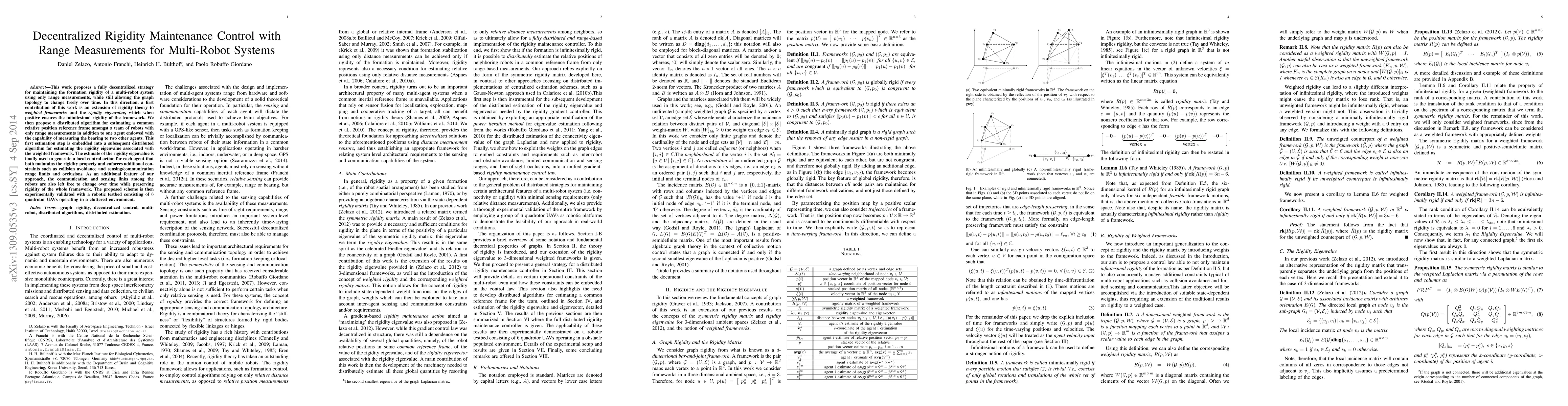 This work proposes a fully decentralized strategy for maintaining the formation rigidity of a multi-robot system using only range measurements, while still allowing the graph topology to change freely over time. In this direction, a first contribution of this work is an extension of rigidity theory to weighted frameworks and the rigidity eigenvalue, which when positive ensures the infinitesimal rigidity of the framework. We then propose a distributed algorithm for estimating a common relative position reference frame amongst a team of robots with only range measurements in addition to one agent endowed with the capability of measuring the bearing to two other agents. This first estimation step is embedded into a subsequent distributed algorithm for estimating the rigidity eigenvalue associated with the weighted framework. The estimate of the rigidity eigenvalue is finally used to generate a local control action for each agent that both maintains the rigidity property and enforces additional con- straints such as collision avoidance and sensing/communication range limits and occlusions. As an additional feature of our approach, the communication and sensing links among the robots are also left free to change over time while preserving rigidity of the whole framework. The proposed scheme is then experimentally validated with a robotic testbed consisting of 6 quadrotor UAVs operating in a cluttered environment.