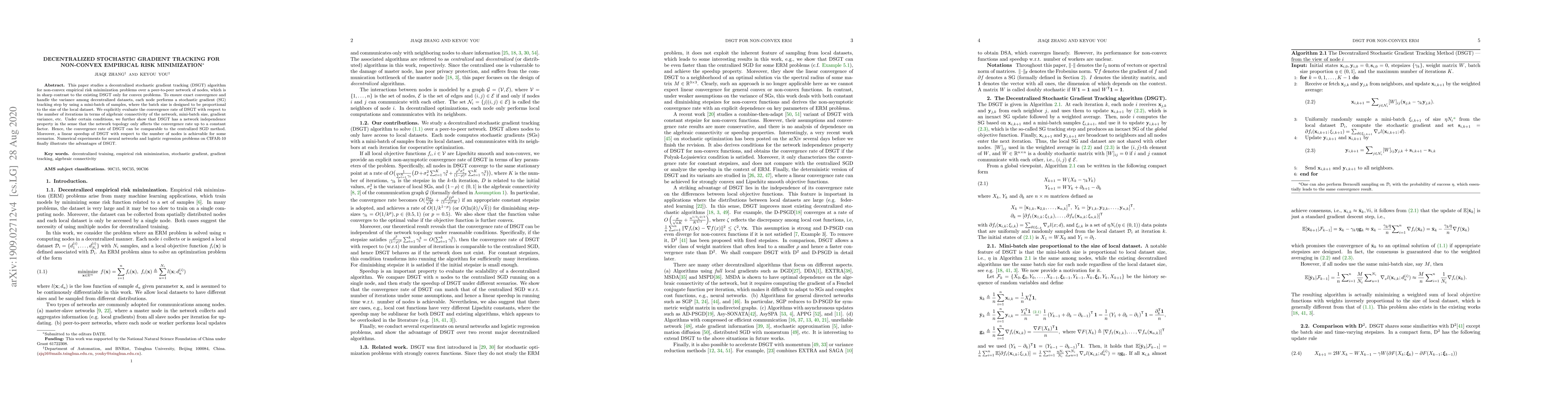 This paper proposes a decentralized stochastic gradient tracking (DSGT) algorithm for non-convex empirical risk minimization, demonstrating exact convergence and network independence properties. Numerical experiments show DSGT's effectiveness and potential linear speedup with increased nodes.